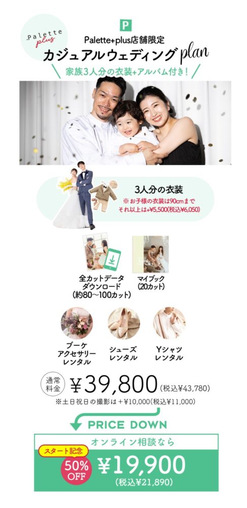 トーク画面のメッセージより、「パパママカジュアルウエディング希望」とお送りください!