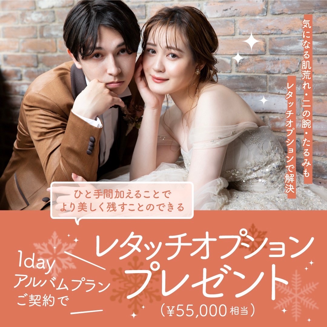 1dayアルバムプランでは55,000円相当の大人気オプション ”レタッチオプション” がプレゼントに♡