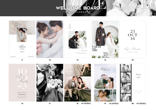 20種類もある豊富なデザインの中からお好みのものをチョイスすることが可能&使用するお写真もおふたりでお選びいただけます!