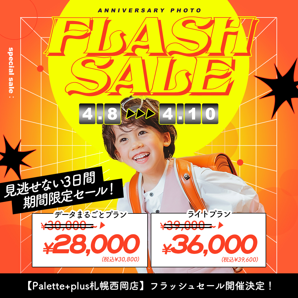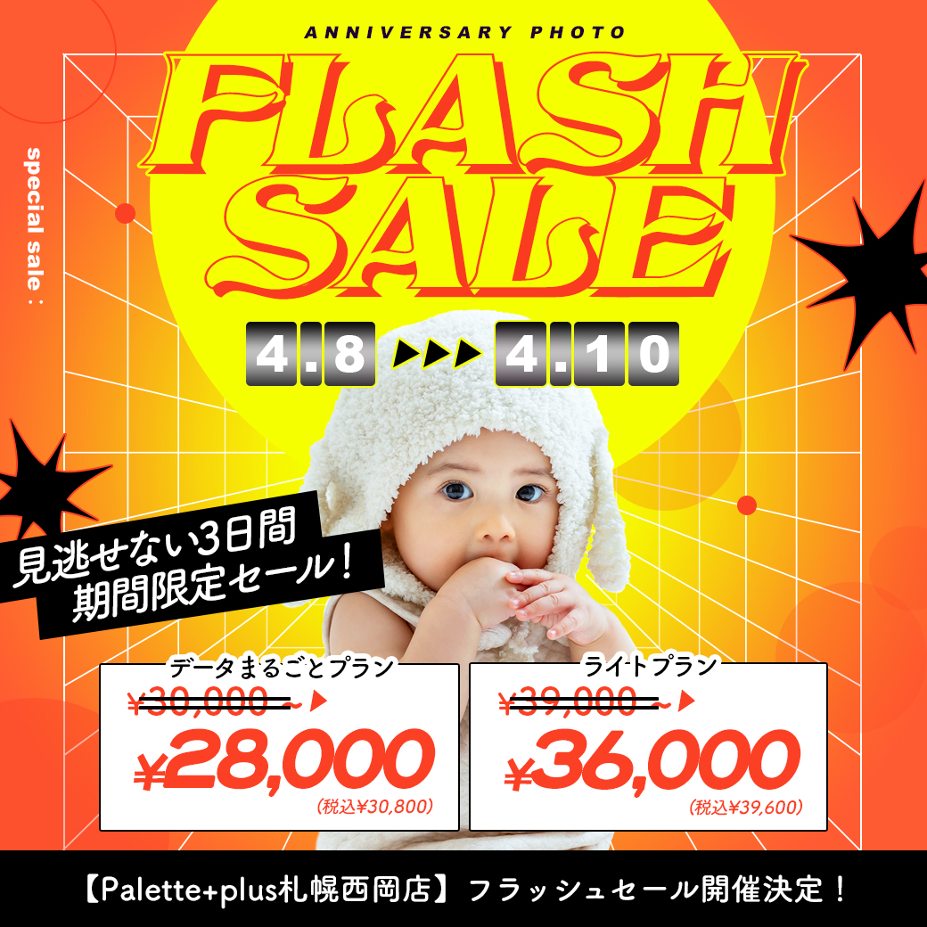 電撃プライス!”フラッシュセール”開催【4/8〜4/10】 / ベビーキッズ全種目記念撮影対象!【札幌西岡店】