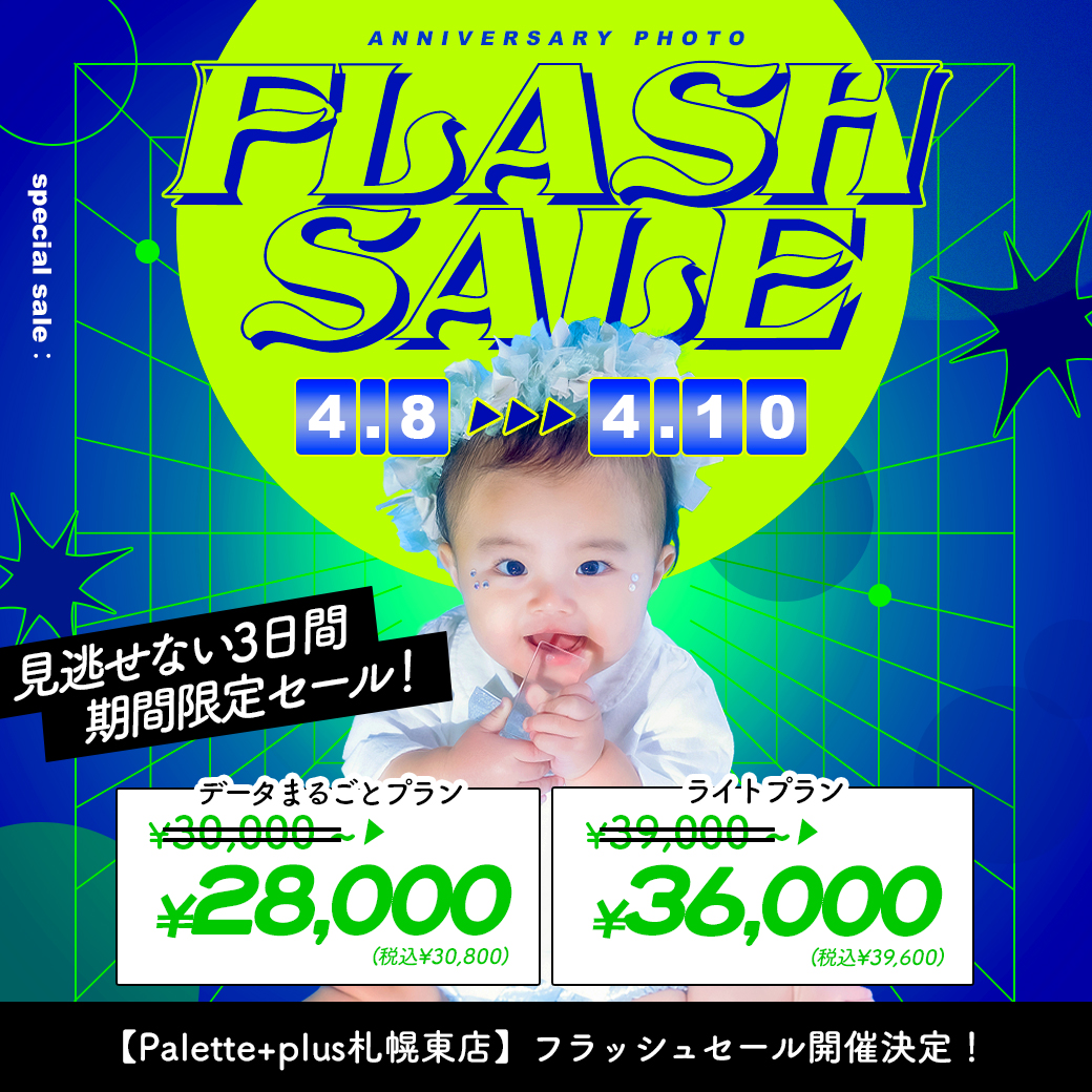電撃プライス!”フラッシュセール”開催【4/8〜4/10】 / ベビーキッズ全種目記念撮影対象!【サッポロファクトリー店】