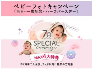 【函館北斗店】”百日・ハーフ・1歳記念”7月のキャンペーン特典!今月は特典盛りだくさん♡