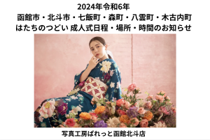 【写真工房ぱれっと函館北斗店】令和6年2024年「はたちのつどい」成人式日程&会場場所&開催時間のお知らせ 函館市・北斗市・七飯町・森町・八雲町・木古内町 道南エリア