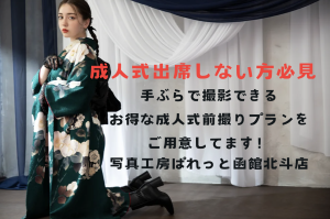 【写真工房ぱれっと函館北斗店】「はたちのつどい」成人式出席しない方へ!手ぶらで成人式振袖写真撮影しませんか? -