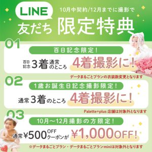 【100日&ハーフバースデー&1歳記念】ぱれっと函館エリア公式ラインお友達新規登録すると特典たくさん付いてくる! -