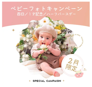 【函館北斗店 】百日・ハーフバースデー・1歳お誕生日記念のベビーフォト♫お得な2023年2月のキャンペーン情報・:*+. -
