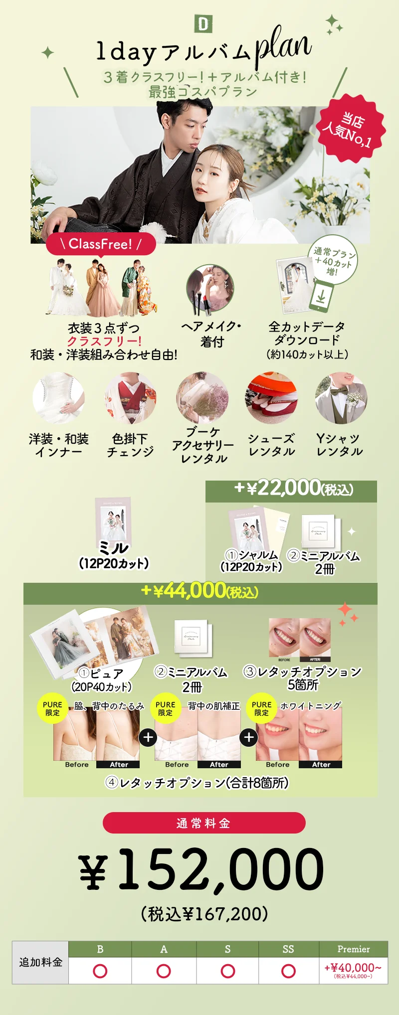A class + ¥20,000 (¥22,000 incl. tax)