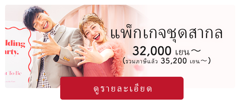 การถ่ายภาพแต่งงานโดยไม่ต้องจัดงานพิธี (การถ่ายภาพก่อนหรือหลังวันแต่งจริง) เริ่มต้นที่ 32,000 เยน (รวมภาษี 35,200 เยน) ให้คุณได้ภาพสวยในสไตล์ที่พิถีพิถันและคุ้มค่าเกินราคา