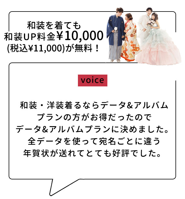 | 撮影 | ファミリー ¥11,000(税込¥12,100) | お子様 0~1歳:無料 2~7歳:1着¥5,500(税込¥6,050) | ||||||||