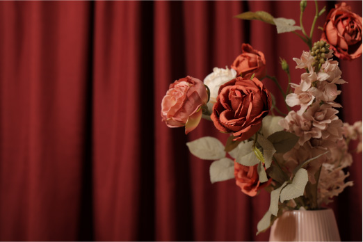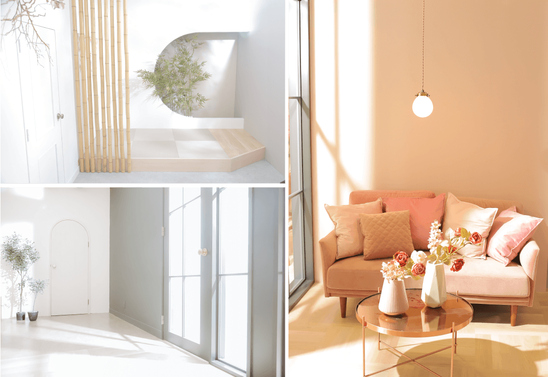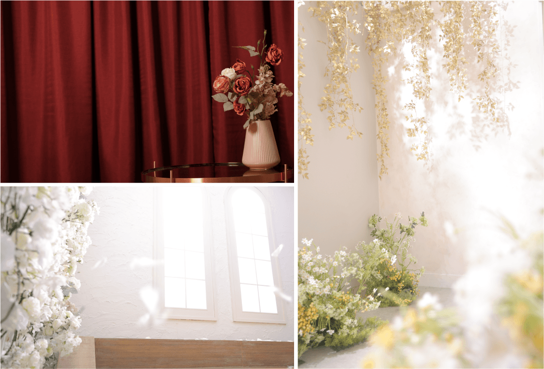 和室から赤いカーテンが特徴の洋室まで。日当たりの良い窓辺など、様々なシチュエーションをご提供することができます。