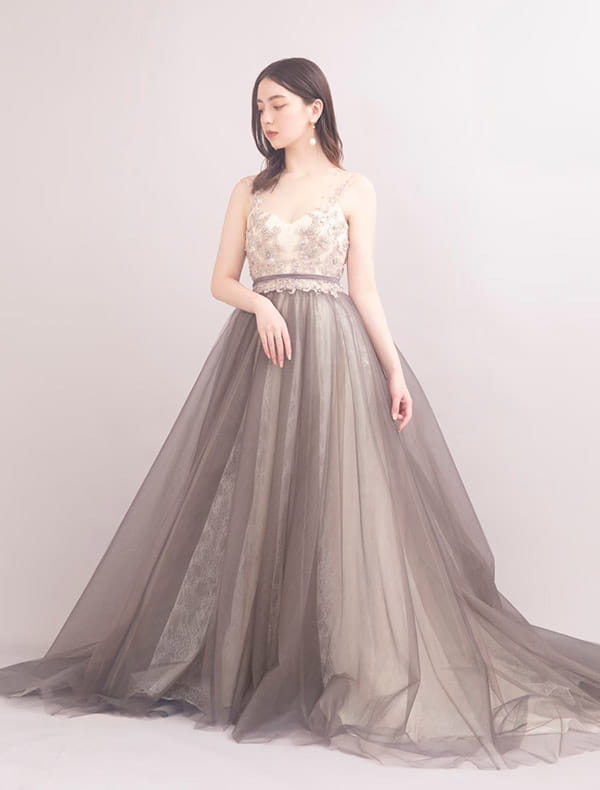 ウエストにゴールドの切り返しでスタイル抜群!落ち着いた印象のドレスです。