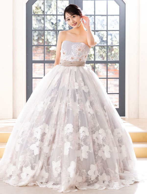 ビーズやコサージュがたっぷり施された華やかなドレス