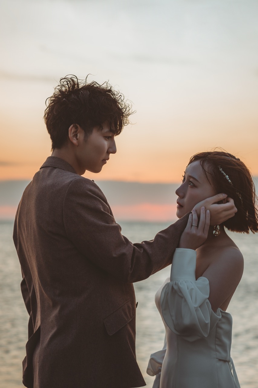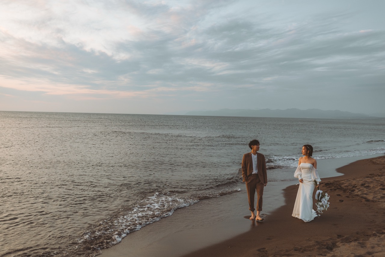 このマジックアワーの光の中でのウェディングフォトは、お二人を優しく包み込み、情熱的でロマンチックな感動の一枚を約束します。