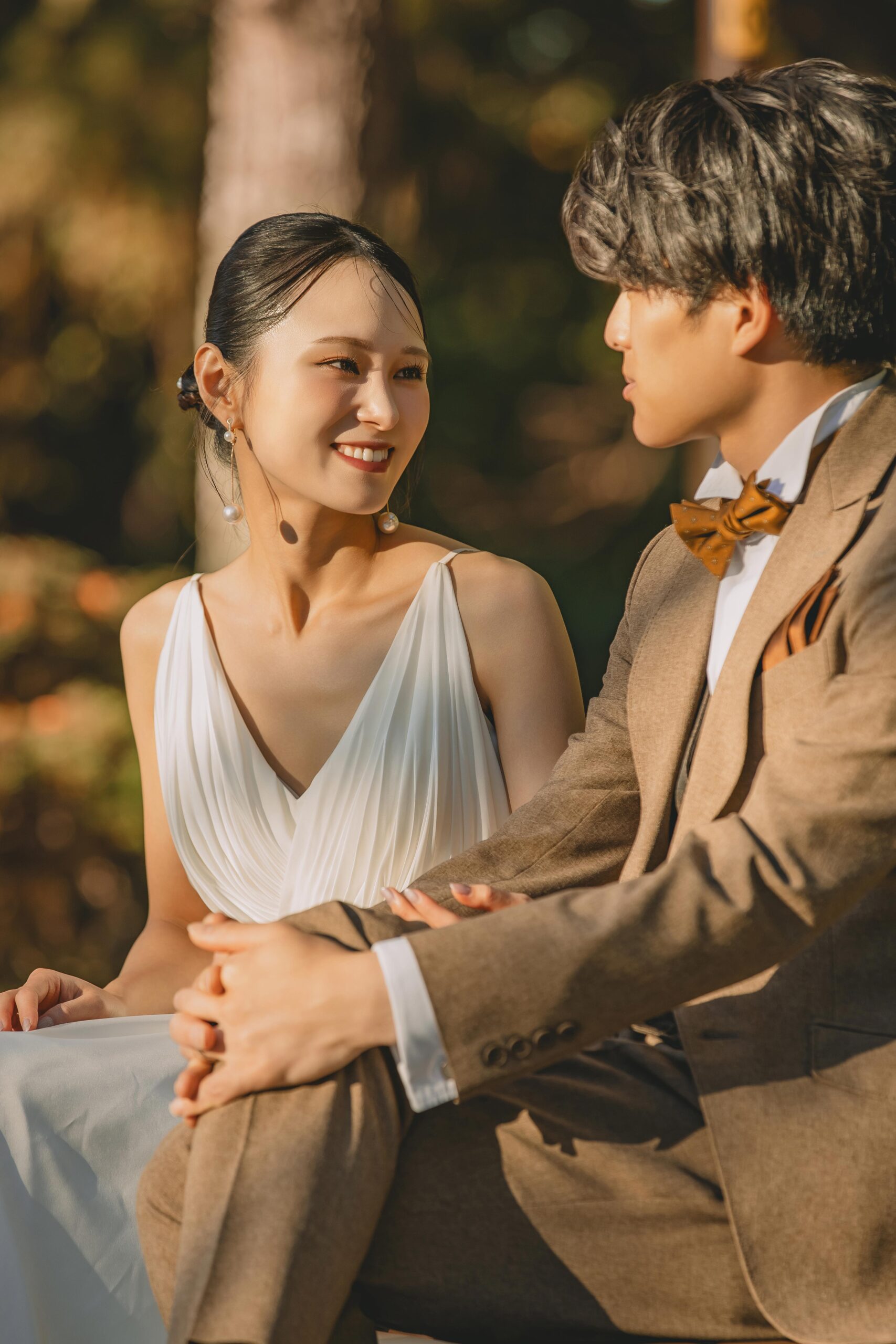 緑豊かな森の中では、純白のウェディングドレスが映えるナチュラルで爽やかなショット、紅葉のトンネルではドラマチックで情熱的な婚礼フォトを。