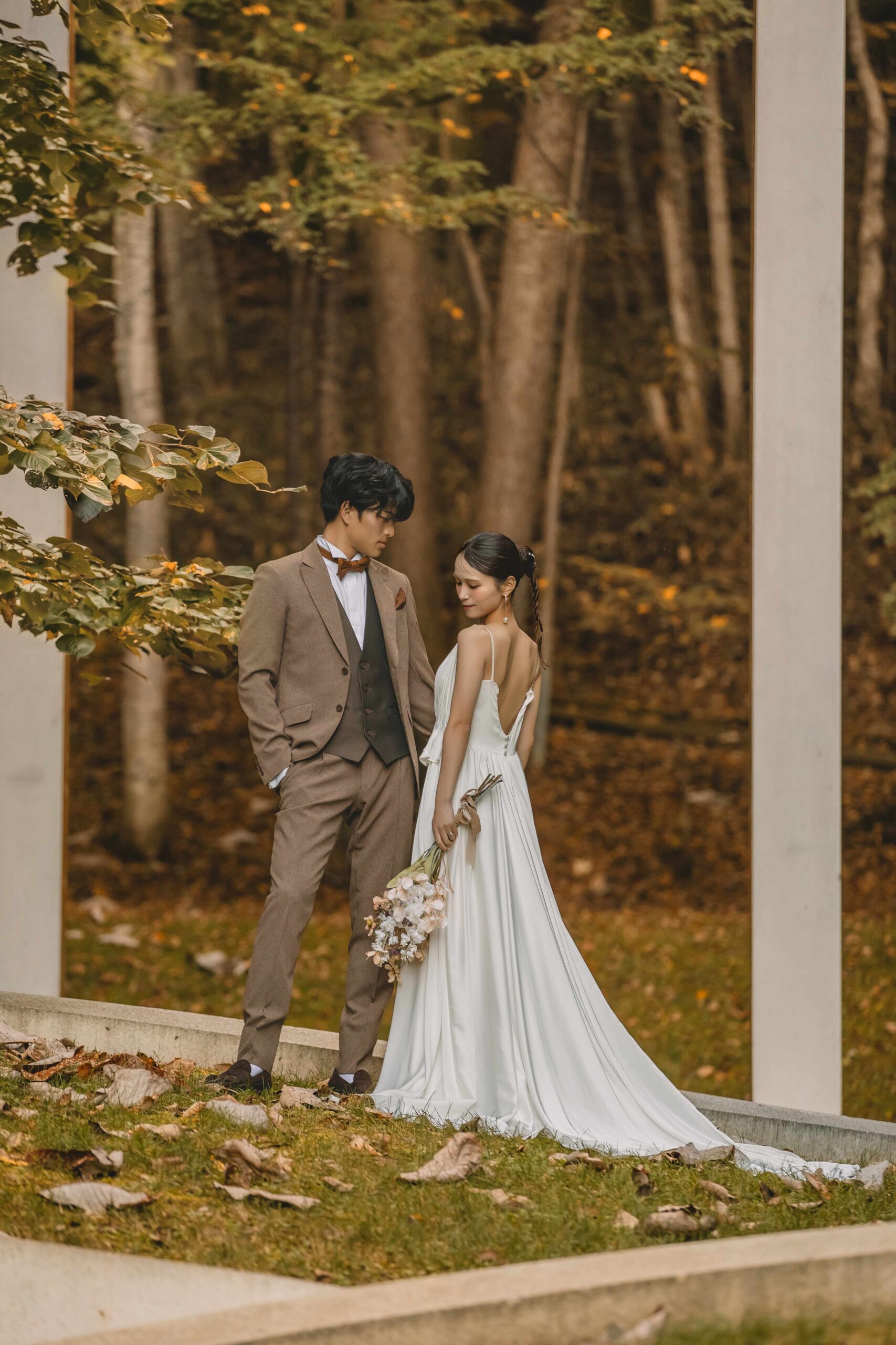 美術館を背景にしたモダンなショットや、森の光の中で撮影するロマンチックなシーンなど、多様なウェディングフォトが実現可能です。
