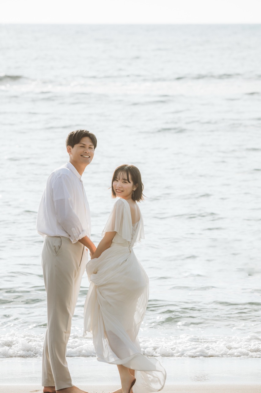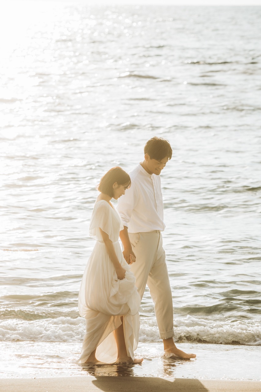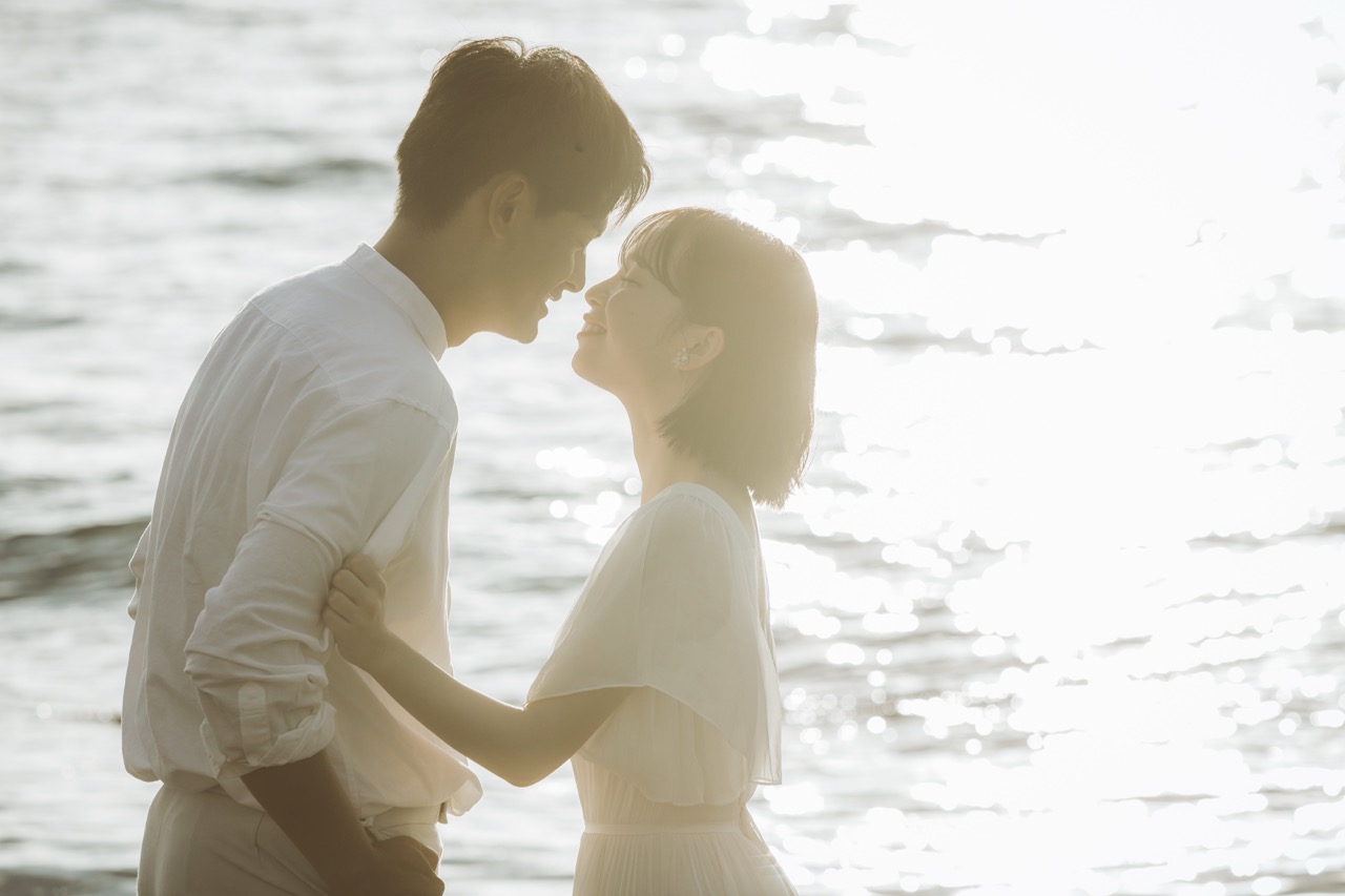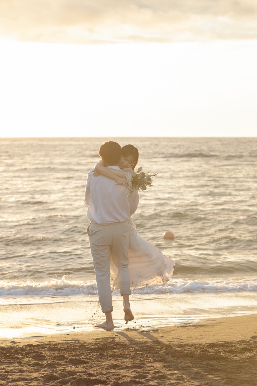 ゴールデンビーチるもいの魅力は、何と言ってもその名が示す通りの「ゴールデン」なサンセット。特におすすめなのは、空気が澄み、茜色の光が砂浜を黄金色に染め上げる晩夏から秋の撮影です。ドラマチックで映画のワンシーンのような感動を与え、指先まで愛が伝わるような詩的な描写が可能です。