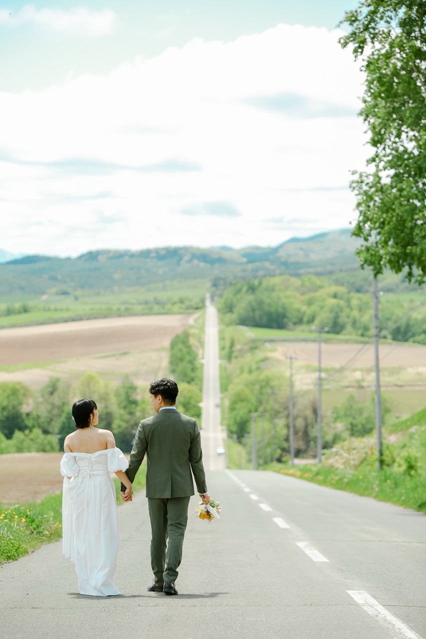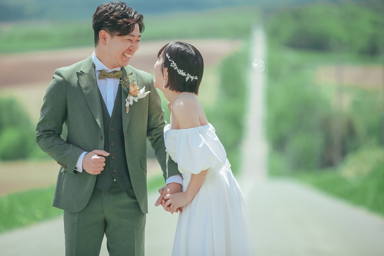 春の息吹を感じながら、美瑛のジェットコースターの路で、お二人の未来へ繋がる、感動的で雄大なロケーションフォトを撮影しましょう。