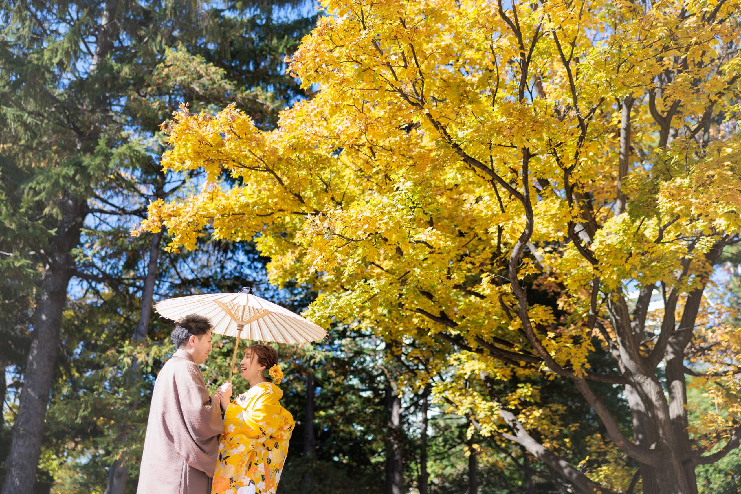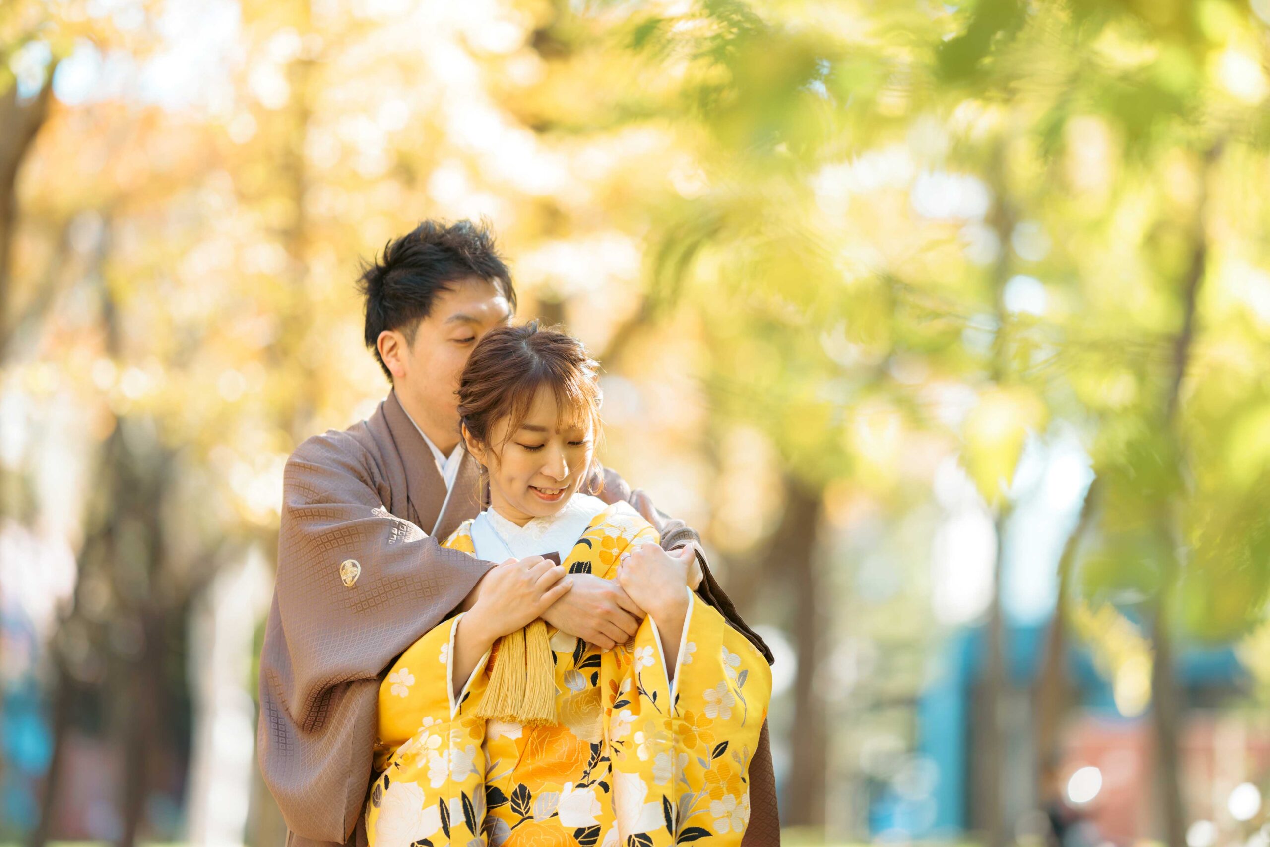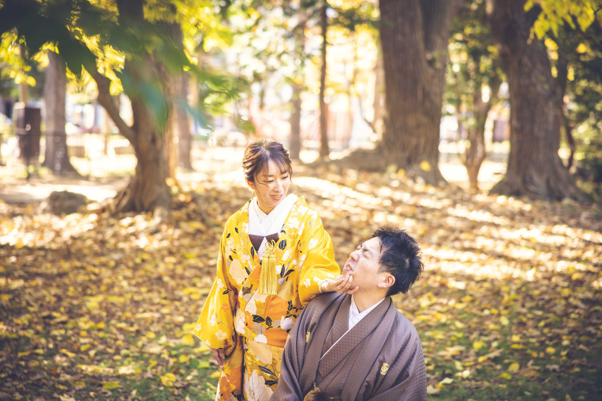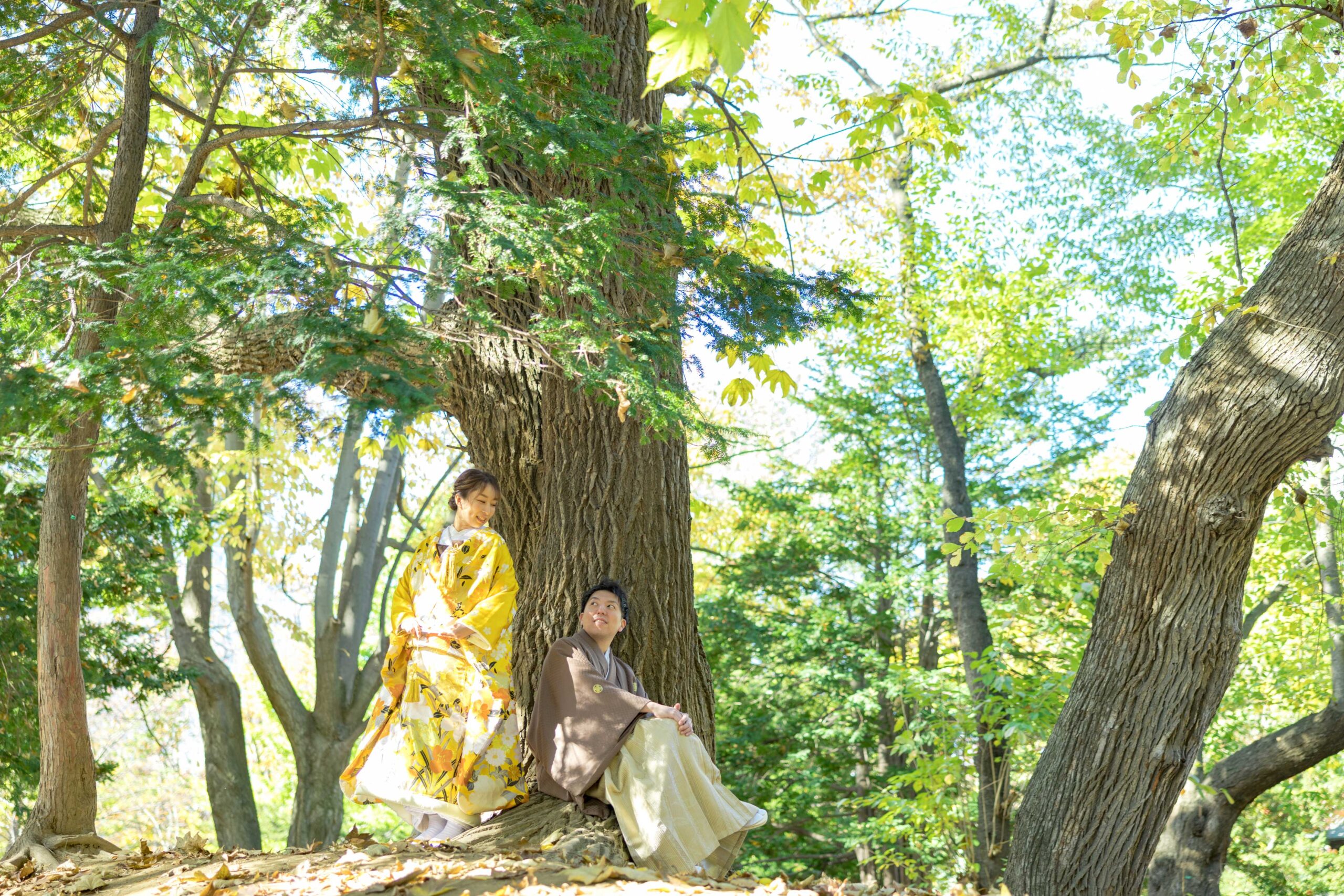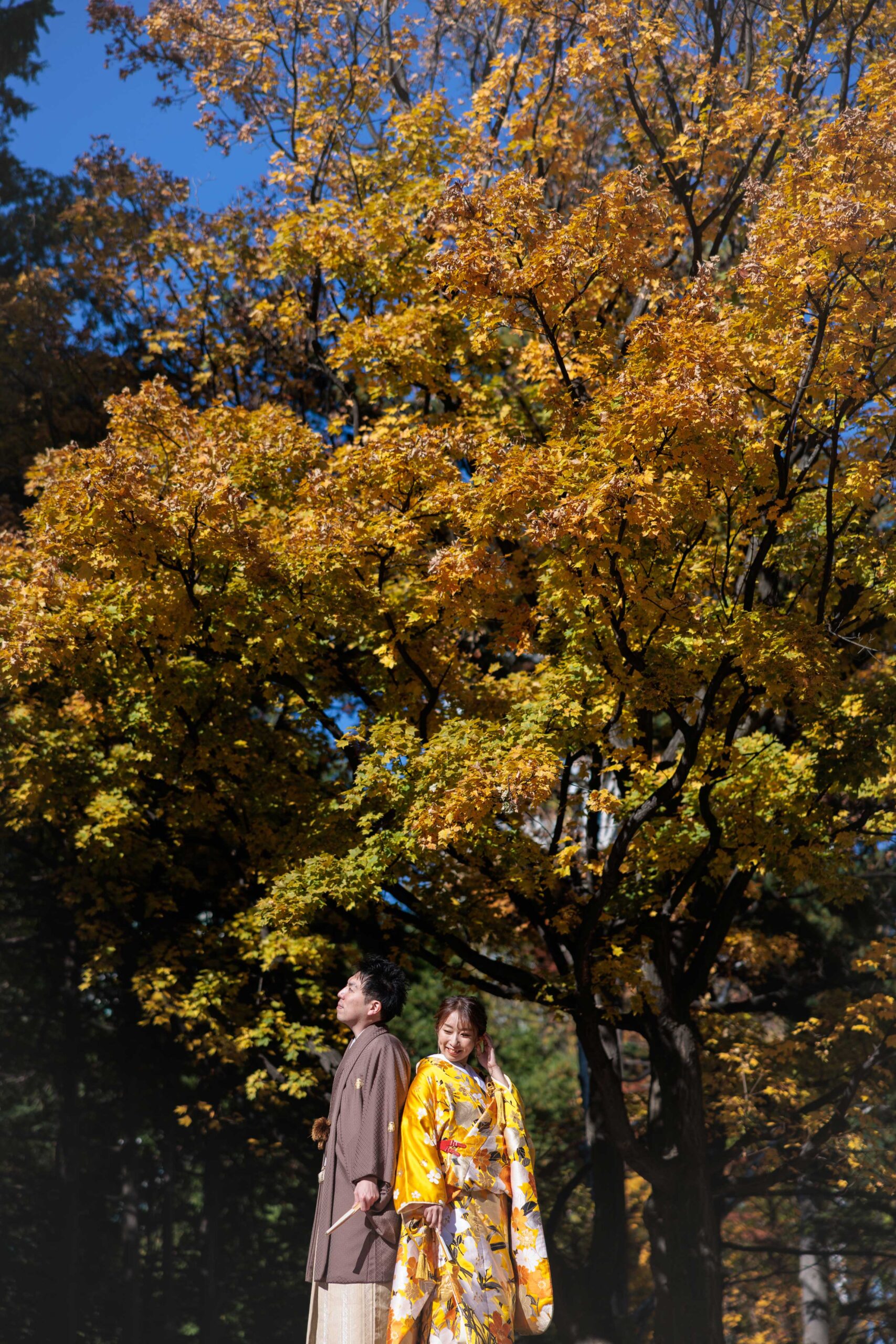 庭園の燃えるような紅葉を借景にした艶やかな和装フォトは、季節の美しさと歴史の重みが融合した、格調高い一枚として記憶に残ります。