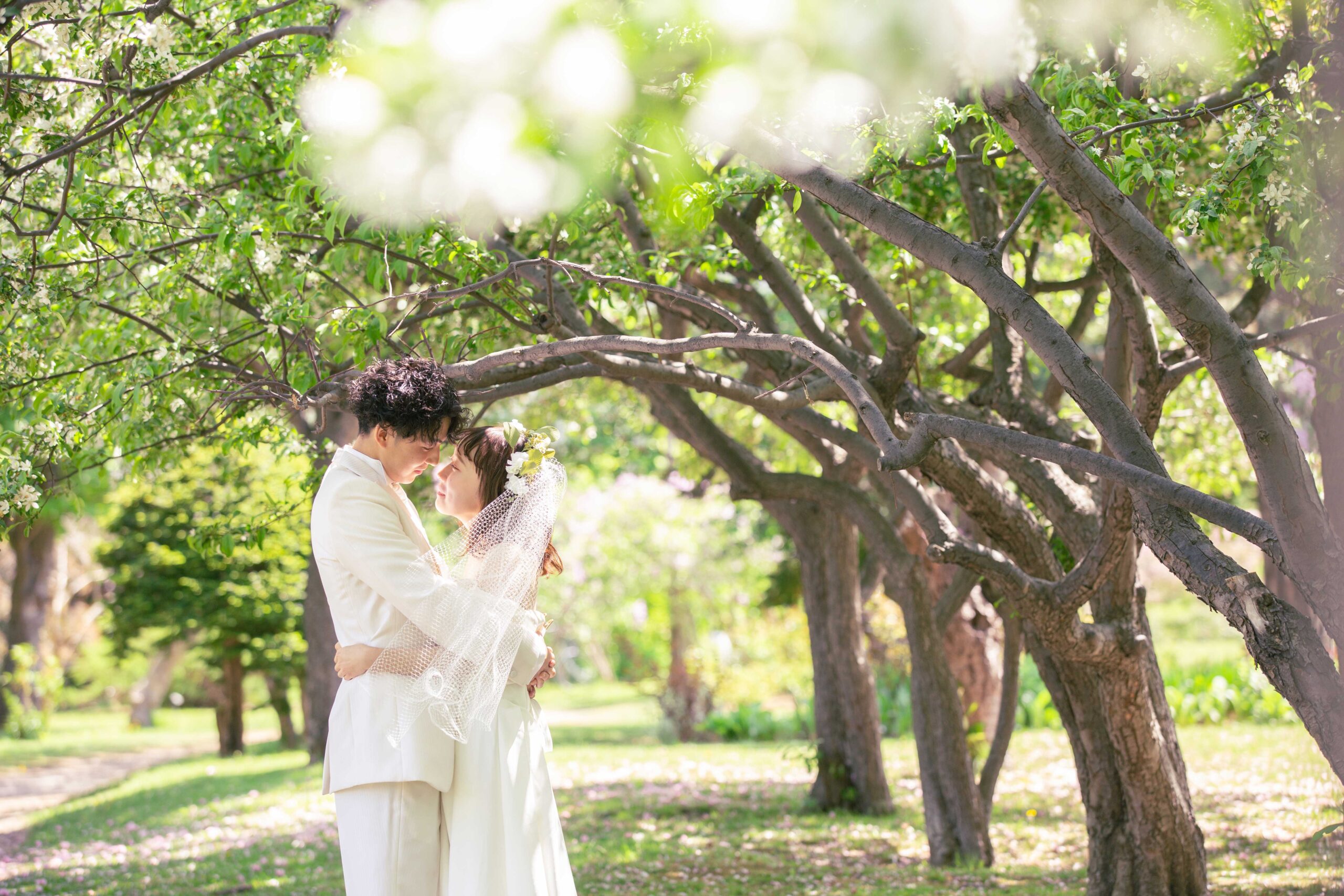 夏の中島公園は、豊かな緑とボート池の涼しさが魅力。鮮やかな色彩の中で、豊平館や日本庭園など多様なウェディングフォトが撮れる札幌市内のロケにおすすめ。