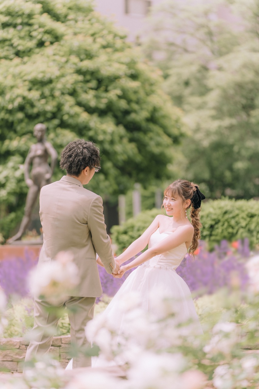 北海道の札幌市でロケーションフォトをご検討の方へ。札幌の中心にある大通公園は、都会の開放感と美しい自然が融合した最高のロケスポットです。四季折々の花や噴水、緑の芝生が織りなす空間は、ウェディングドレスが映えるロケーションフォトに最適。札幌テレビ塔を背景にしたドラマチックな一枚や、ヨーロッパ風の噴水前での優雅なショットなど、多彩な結婚写真が叶います。アクセスが良く、札幌観光と前撮りを両立したいカップルに強くおすすめ。