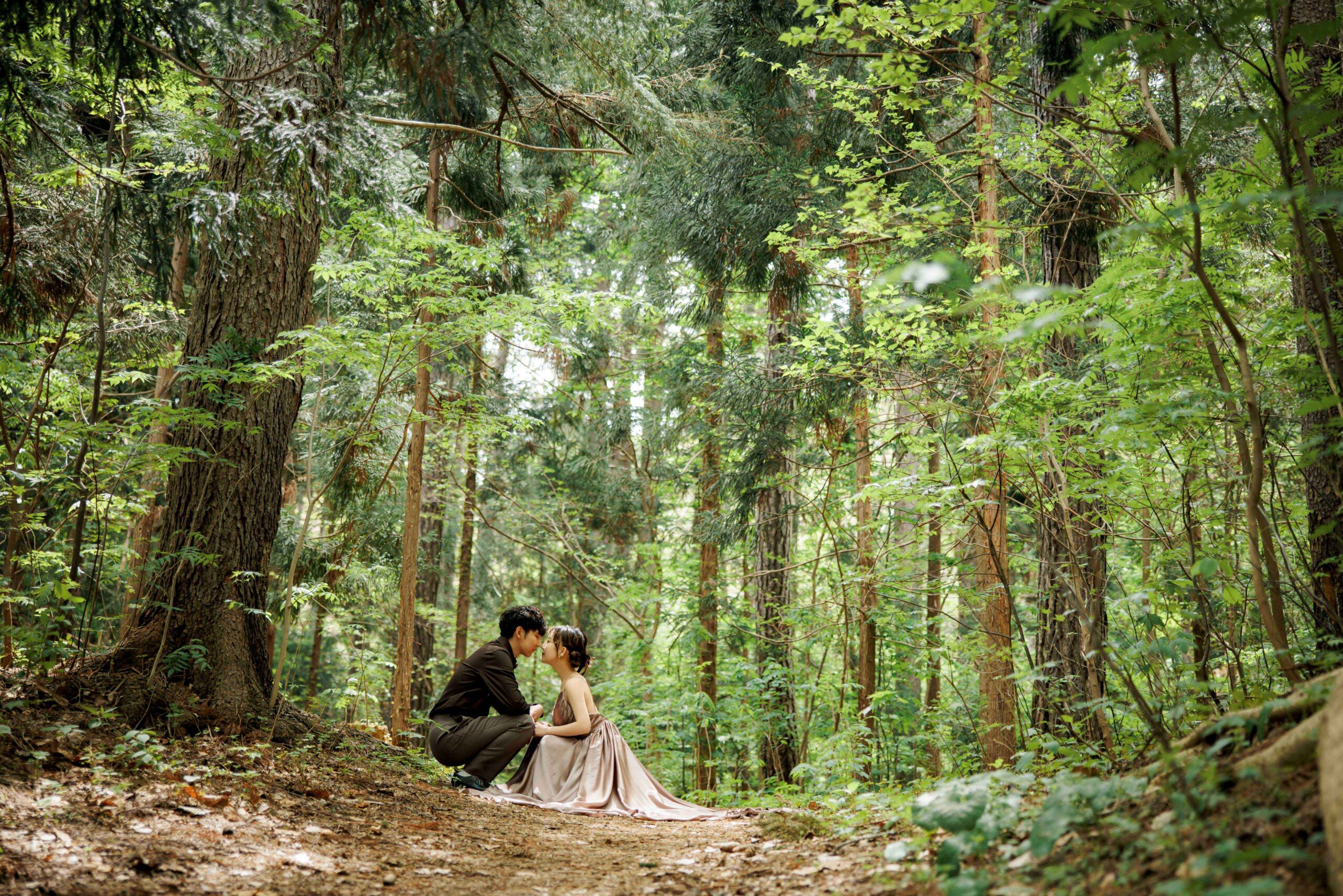 昼の札幌円山公園は、豊かな自然と明るい木漏れ日が降り注ぐ、開放的なロケ地です。新緑や紅葉、雪景色など四季折々の美しさの中で、ナチュラルで優しさ溢れるウェディングフォトロケにおすすめ。