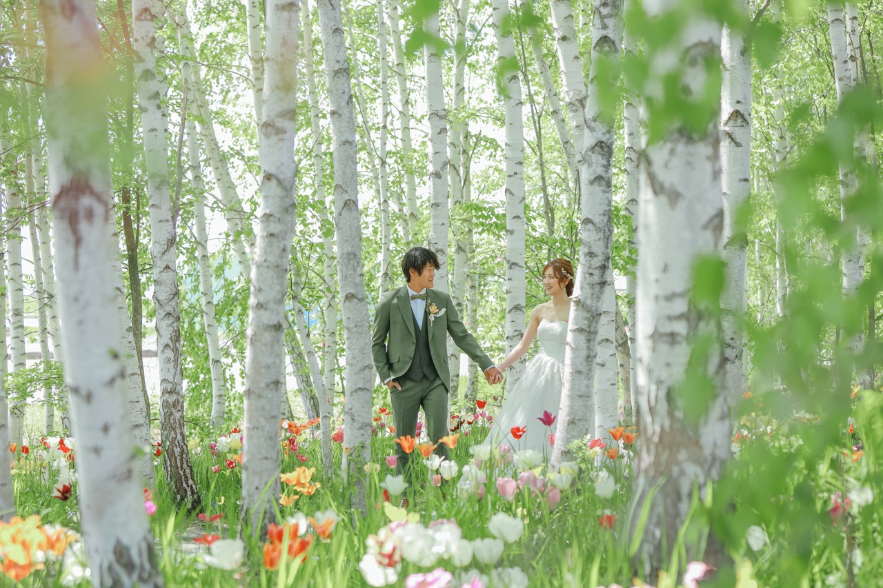 特にチューリップやムスカリなどの球根植物が一斉に顔を出すユニークな撮影ポイントは、生命の喜びを感じさせます。まだ観光客が少ない静かな時期は、お二人だけの特別な空間でのブライダルフォトを叶えます。
