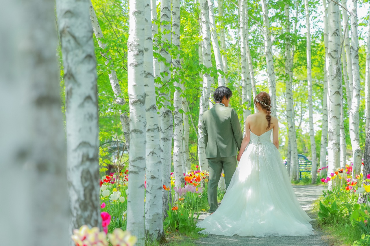 色とりどりの花が競い合うマザーズガーデンや、涼やかな白樺の小径は、花嫁の純白のドレスを一層引き立てます。