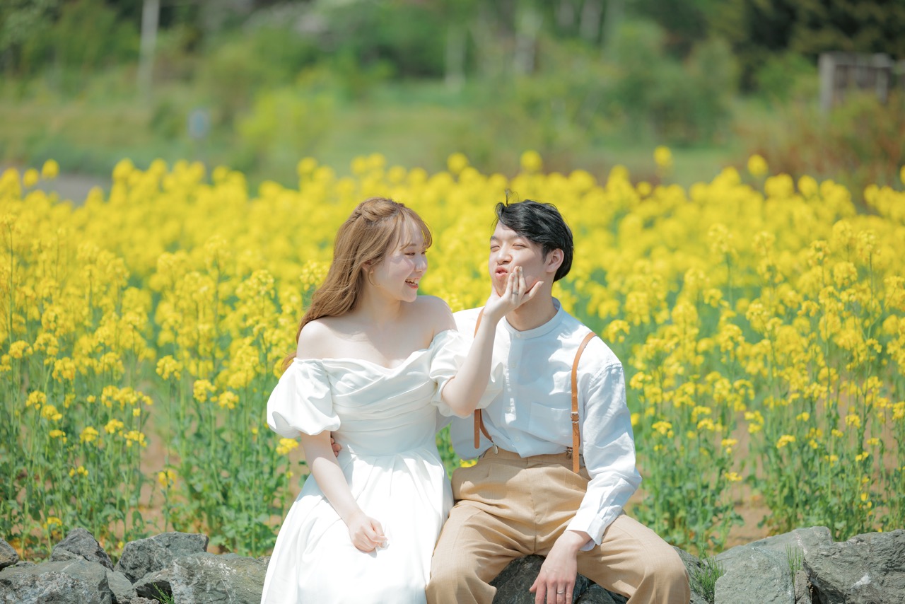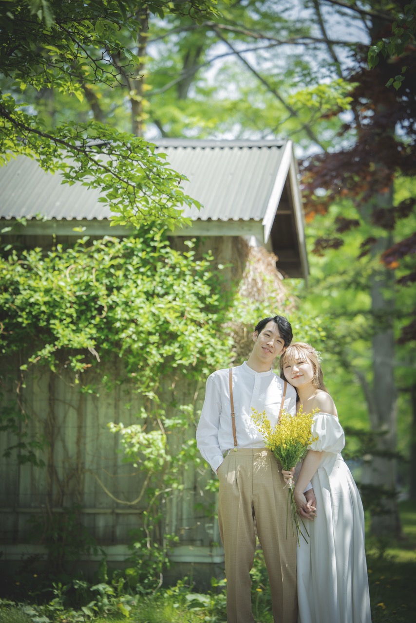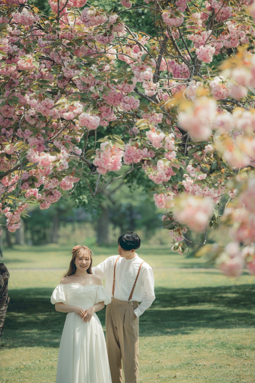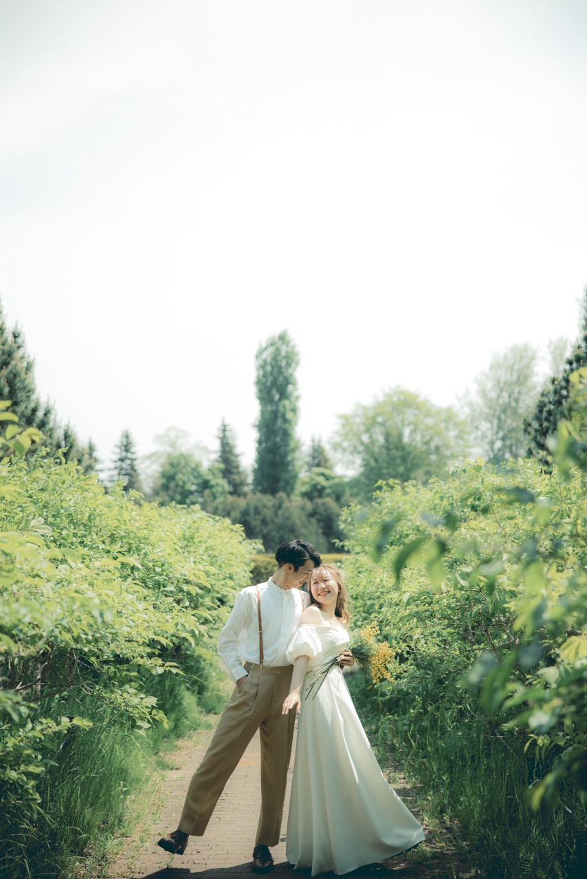 秋には、コスモスや紅葉が札幌の空の下で美しく色づき、情緒的で温かみのあるウェディングフォトを演出します。