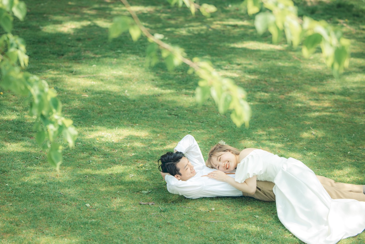 初夏から夏にかけては、公園のシンボルであるユリをはじめとする色鮮やかな花畑が満開となり、ウェディングドレスが映える最高の舞台となります。