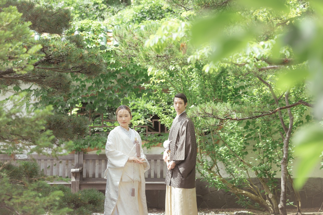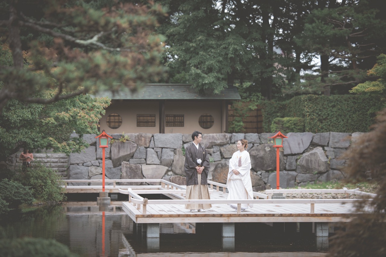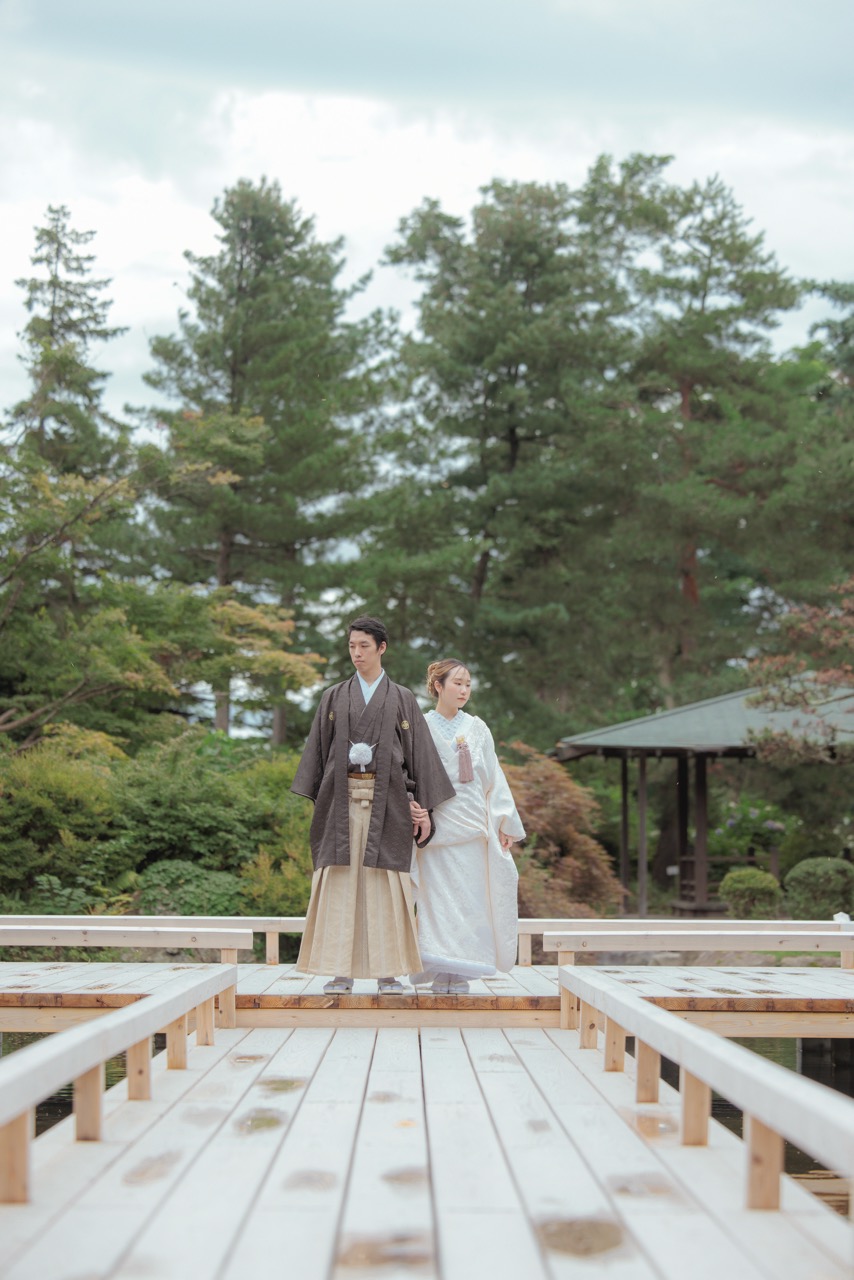 秋には、落ち着いた色合いに染まる中国庭園の建築や池の静けさが、和装・洋装問わず趣のある個性的な撮影を可能にします。