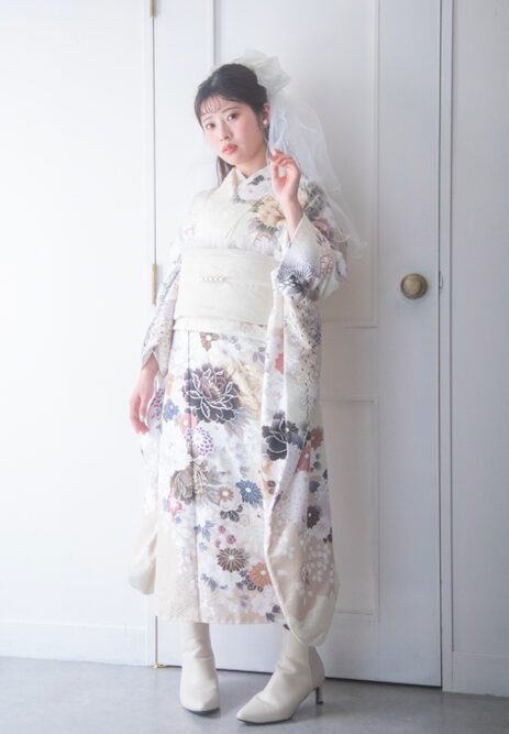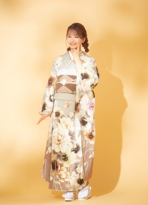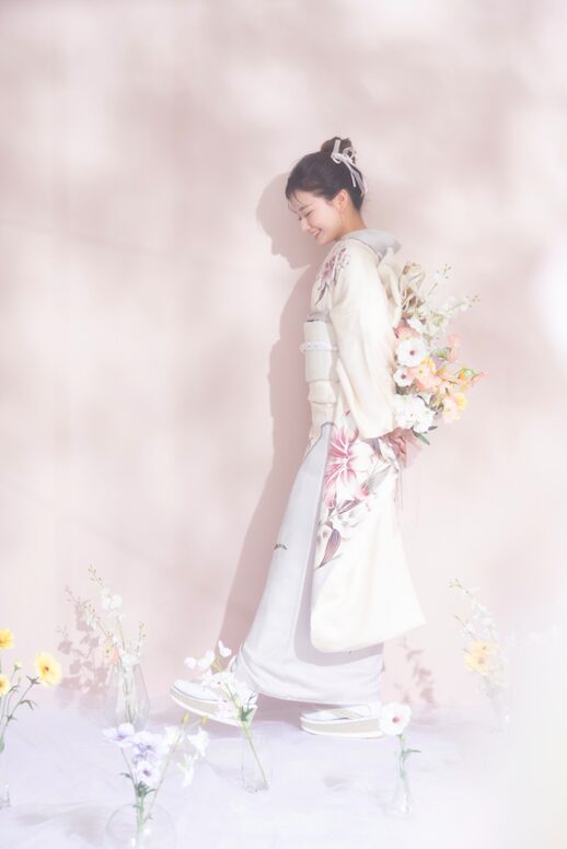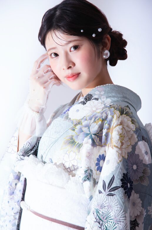グレイッシュなニュアンスを含んだ色合いは、大人っぽさと上品なトレンド感を両立。従来の鮮やかな振袖とは一線を画す、洗練されたスタイルが手に入ります。
