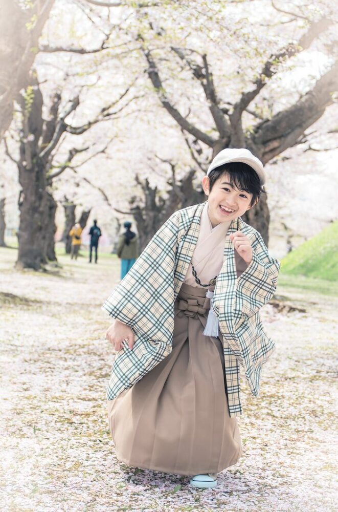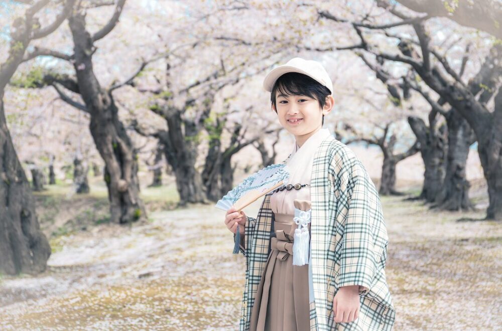 スタジオを飛び出し、開放感あふれる桜の下で撮る写真は、お子様の自然な笑顔を引き出します 。