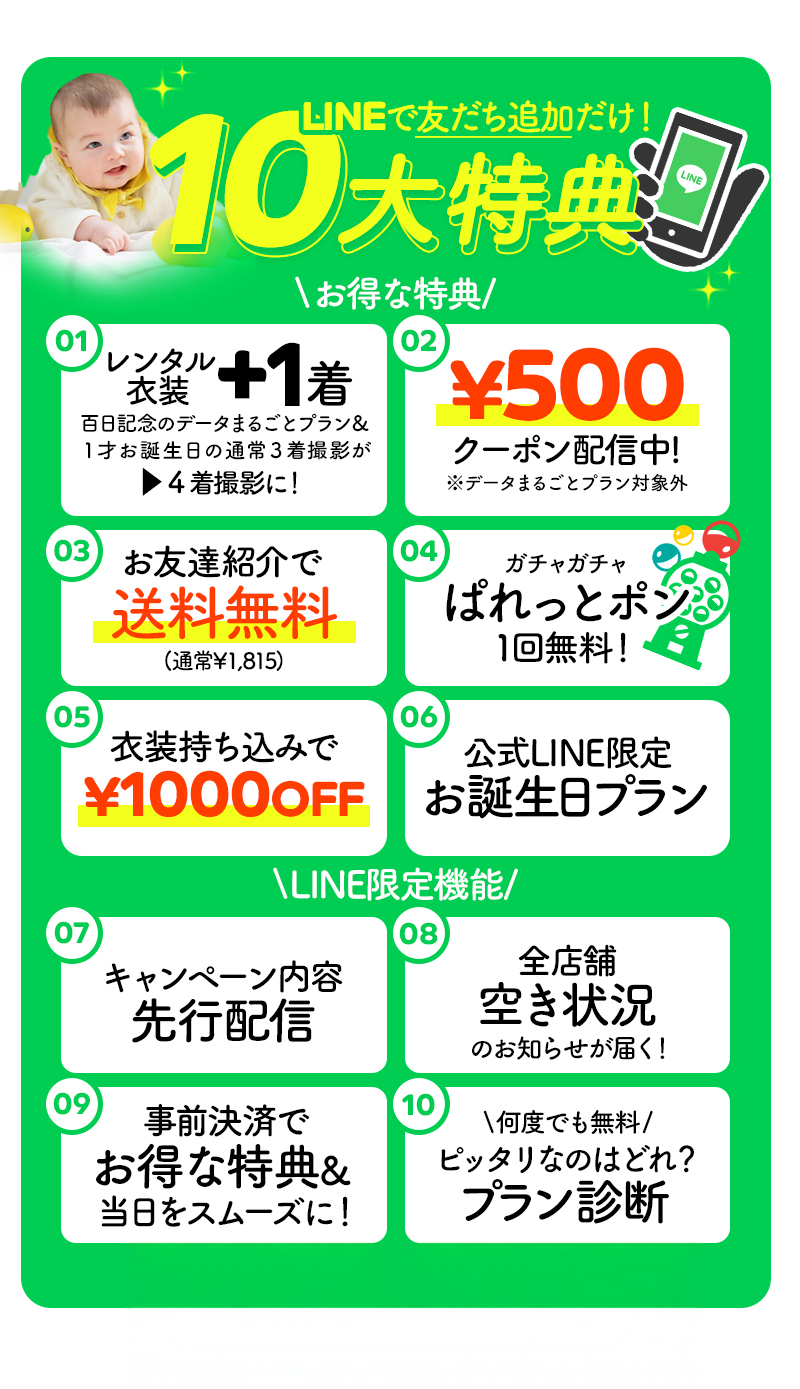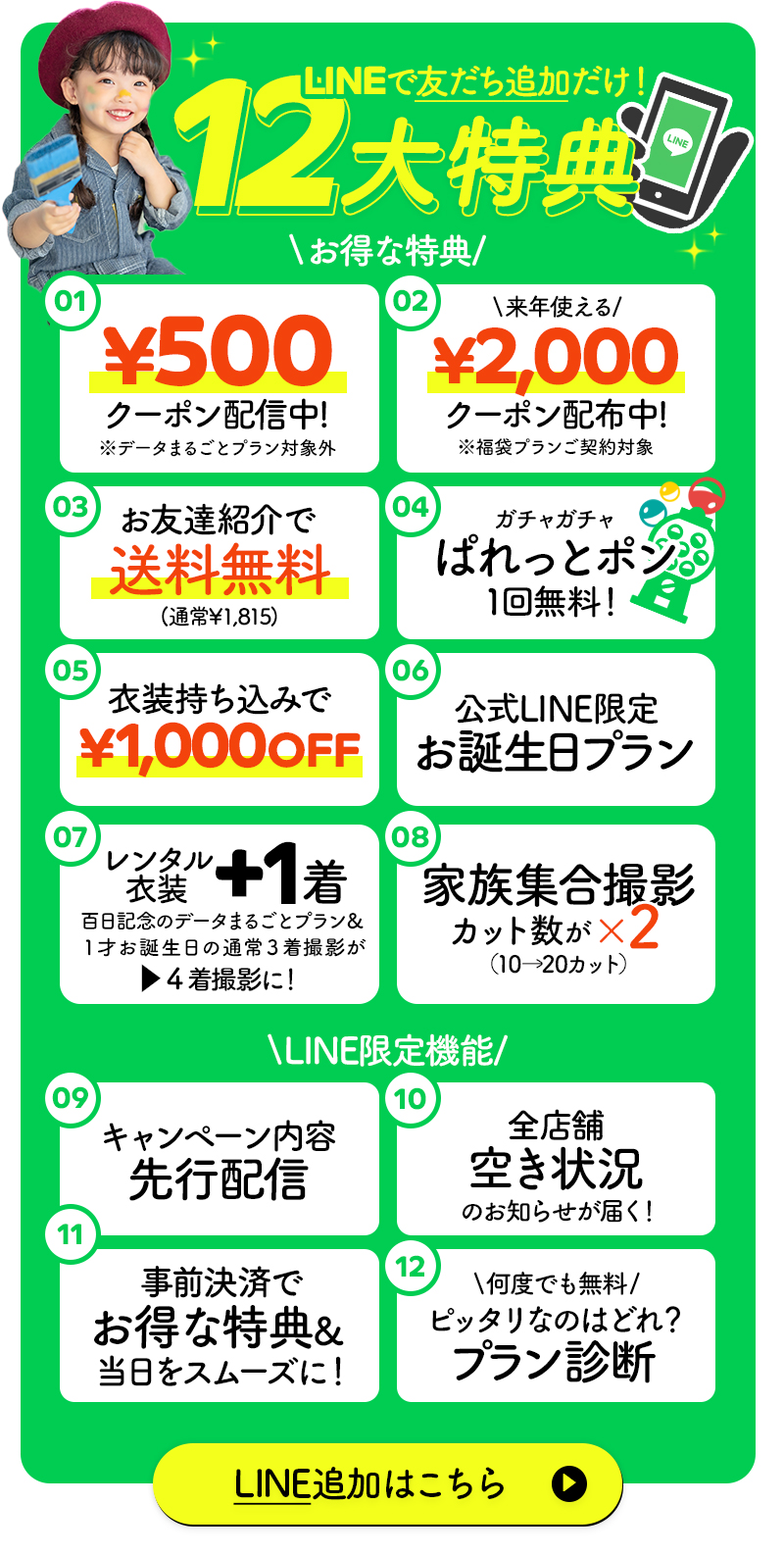 ベビーフォト、七五三記念、入学&卒園記念でご利用いただけます!