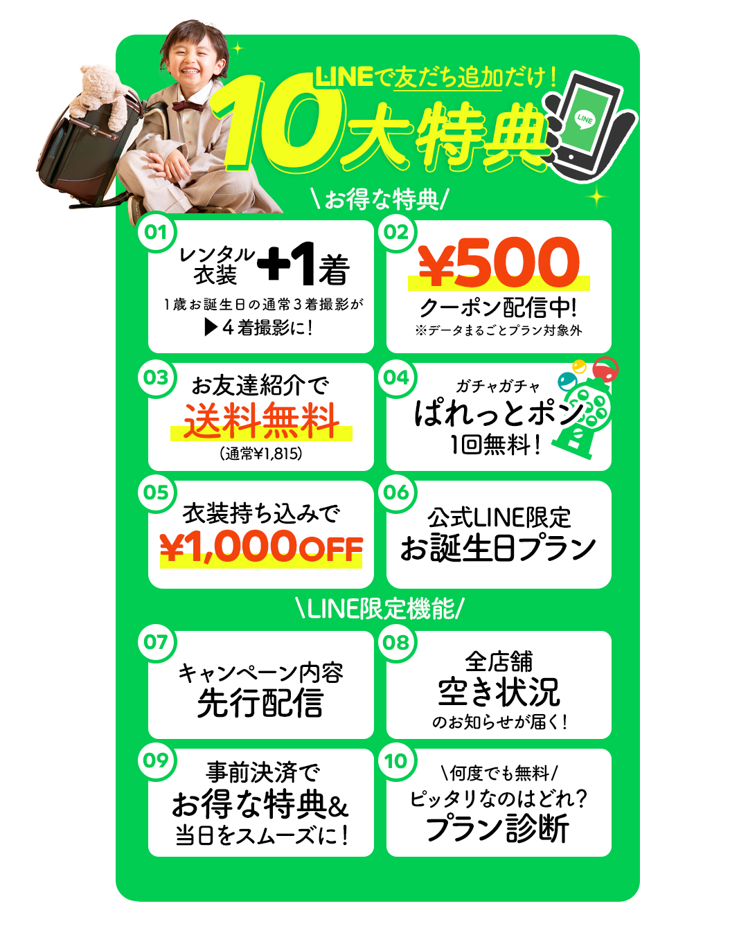 七五三撮影で10大特典がGET!