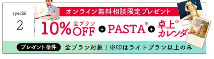 2.オンラインカウンセリングご予約でプラン料金から10%オフ,パスタ&卓上カレンダープレゼント♡