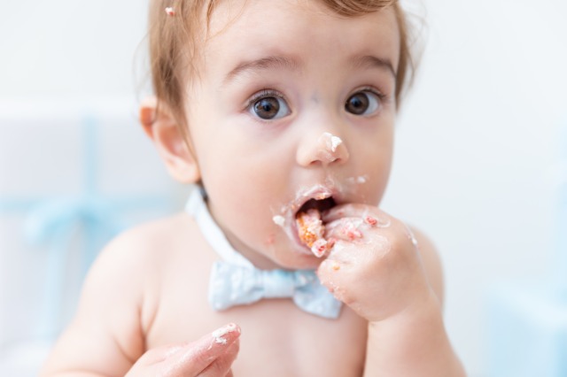 スマッシュケーキは赤ちゃんが手づかみで食べるため、クリームだらけになって豪快に食べる赤ちゃんも。