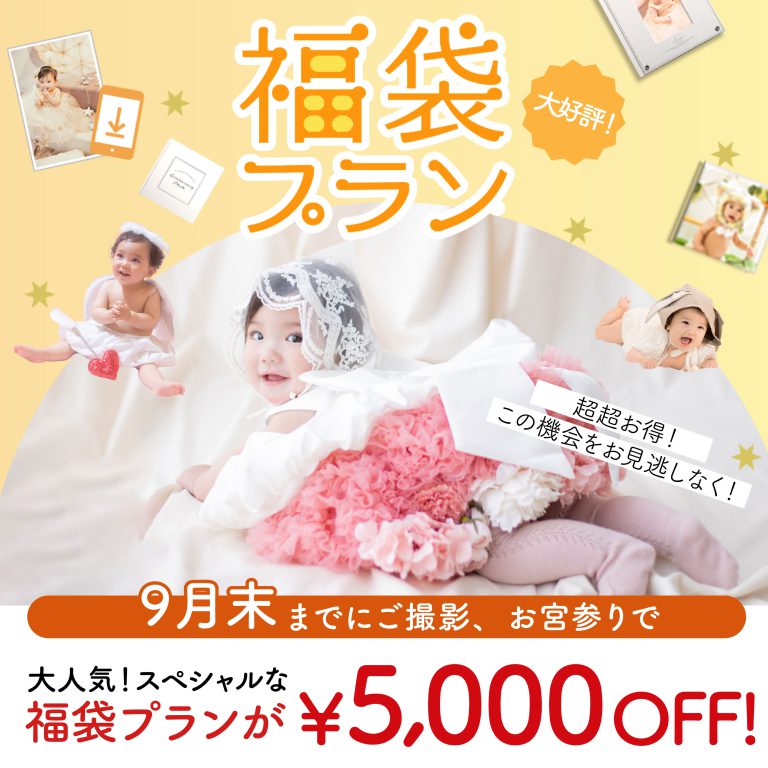 今月は福袋プランでのご撮影が大変お得になっております☆撮影日が9月末までで割引可能◎