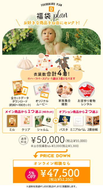 単品購入では税込99,000円の商品となっておりますので、福袋プランに決めていただくのが断然お得♪