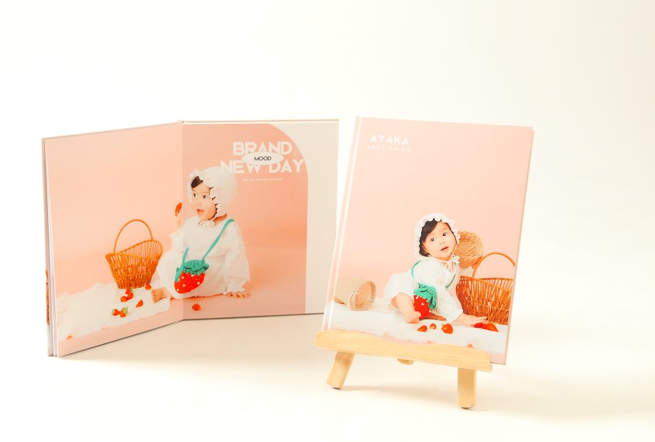 端までフルサイズでお写真が入って、お名前もはいるのでそのまま飾っていただいてもとっても可愛いアルバムです!