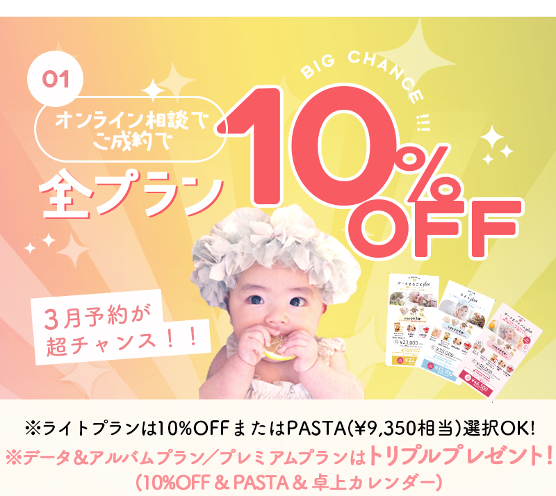 ①オンラインカウンセリングご成約特典!通常最大5%オフのところプラン料金から全プラン10%オフ!