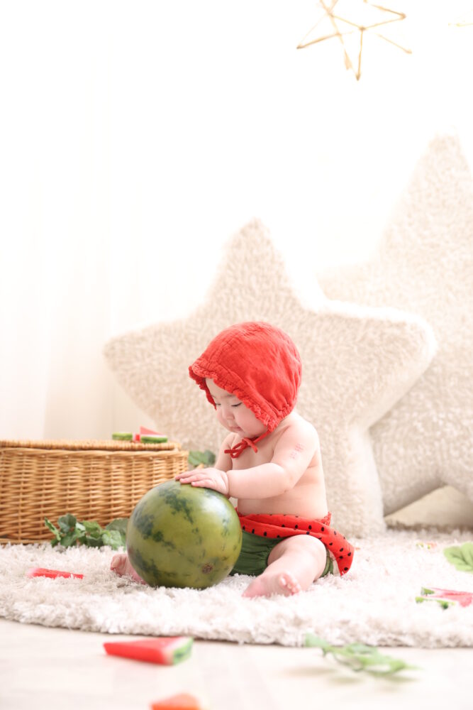 今回はお子様が生まれた月のフルーツ・スイカを使ったお写真をご紹介します。