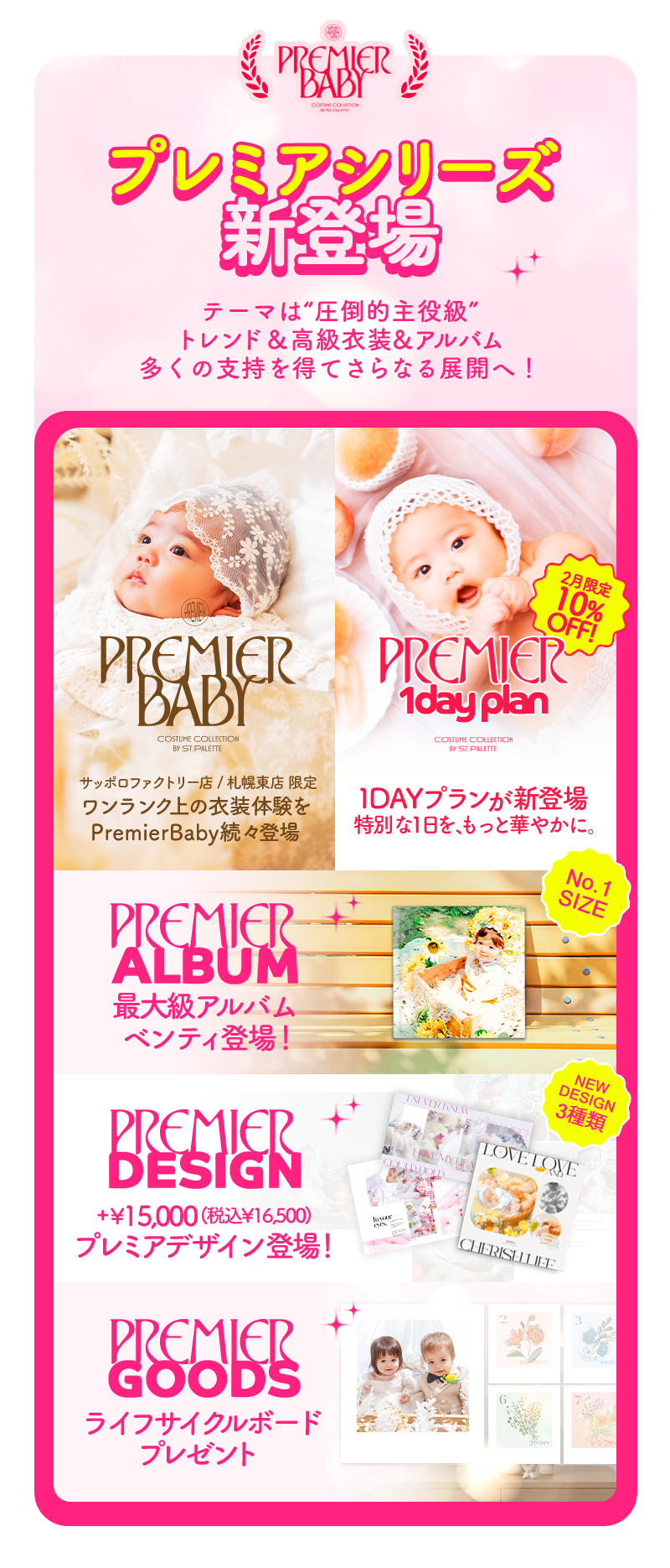 2026/01/20【ベビープレミア】最高級&トレンド衣装ライン&アルバム『premier Series』がスタート!一生残る『今』だから。世界で一番愛おしい、あなたへの贈りもの。