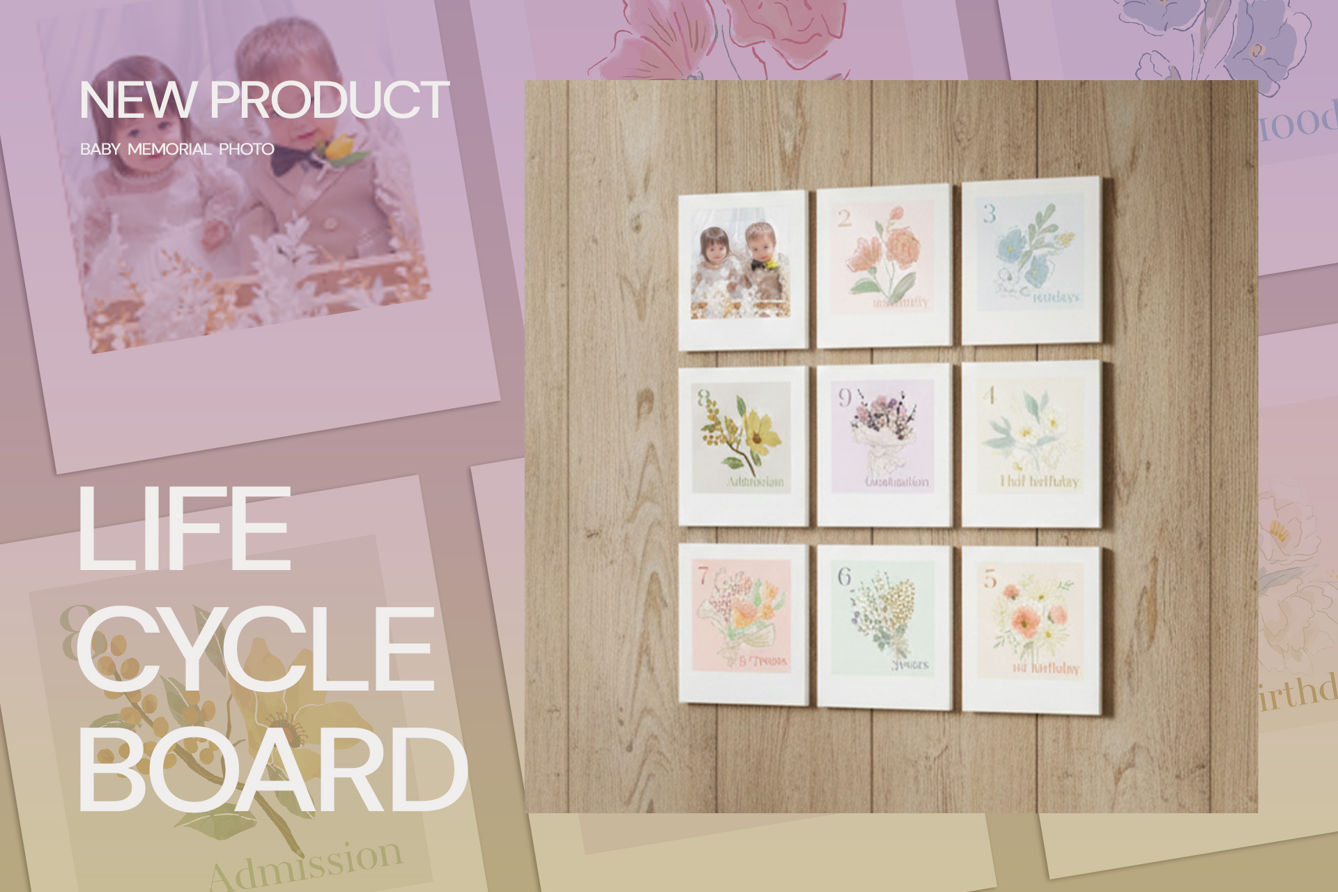 こんにちは!写真工房ぱれっとです!今回はベビープレミアシリーズから、1dayプランご契約の方にプレゼントする『ライフサイクルボード』をたっぷりご紹介!お子様のこれからの成長がより楽しみになる、そんなアイテムとなっております♪