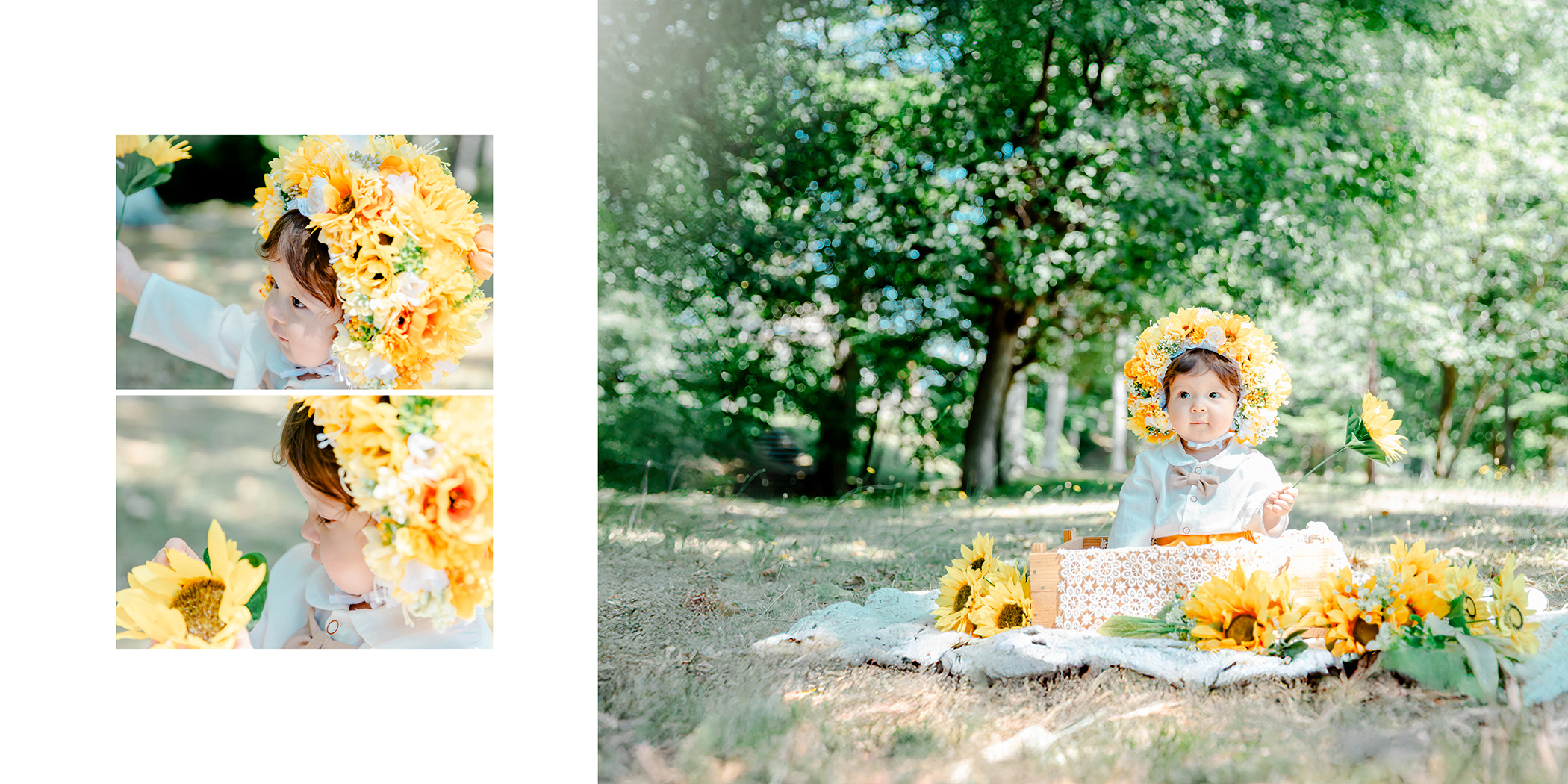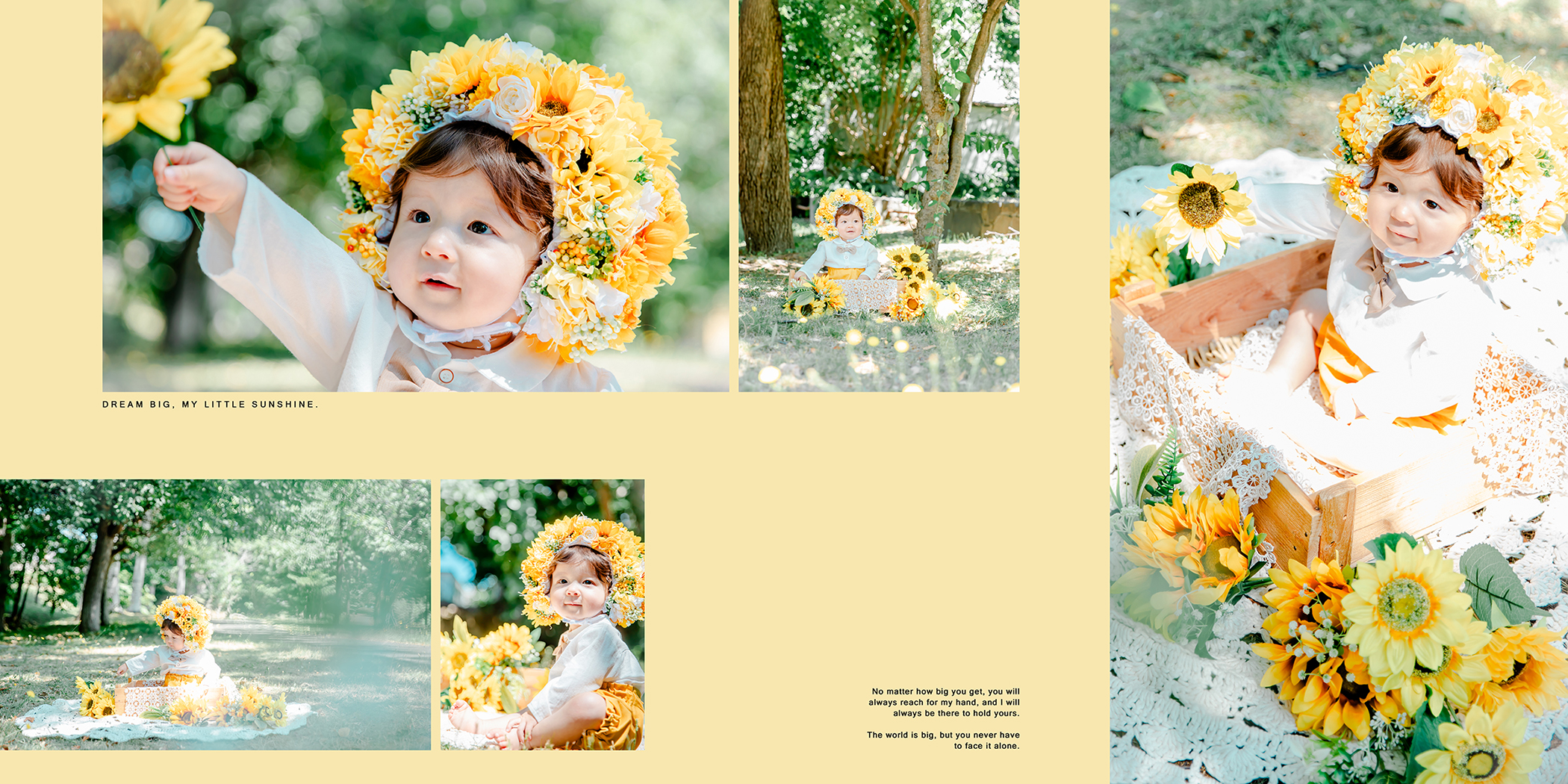開くと横幅60cmにもなる大迫力のキャンバスに、お子様の生き生きとした姿を余すことなく表現します。