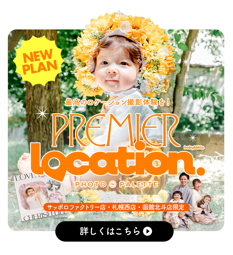 100日も、一才のお誕生日も¥30,000(税込¥33,000)からご案内! こだわりのスタイリングや撮影をリーズナブルに叶えることができます。 札幌の中央区の2店舗(サッポロファクトリー、札幌大通)、帯広、旭川、函館に各1店舗と主要部に店舗展開。北海道を拠点に全ての「記念」が、史上最高になるよう精一杯お手伝いをさせていただきます。 費用は抑えたいけどガマンもしたくない!そんなパパママの皆様へ。様々なプランをご用意しているので、 着ぐるみ2着や、カジュアル&和装など組み合わせも自由自在。 写真工房ぱれっとだからこそ提供できる、おしゃれで可愛い♡お衣装をご用意しております。 どんなご撮影がいいのか、どんな衣装がいいのか、どんな場所がいいのか。イメージが固まっていなくても大丈夫です!お気軽にご相談ください。 各店舗100着以上、全店舗合わせると500着以上の衣装の中から運命の1着に出会える! ご試着は全て無料です。 衣装は全てwebに掲載中!目星をつけて、ぜひご来店して試着してみるのをお勧めしております。 ①普段使うアプリで!LINE登録 ②お急ぎの方は!お電話 ③24時間対応可能!web予約&オンライン相談 お好きな方法でコンタクトをお取りください★ ・どんな衣装があるか知りたい ・我が子に似合う衣装を提案してもらいたい ・お得なキャンペーンを知りたい ・どんな準備をしたら良いのか教えてほしい などなど、どんな些細なお問合せでも構いません!気になることはなんでもお気軽にお問合せください。 気になる店舗をLINE登録! 期間限定のキャンペーンの配信もあるのでお見逃しなく。 店舗のスタッフがお答え致します! ◆写真工房ぱれっと サッポロファクトリー店 ◆写真工房ぱれっと 札幌大通店 ◆写真工房ぱれっと 旭川店 ◆写真工房ぱれっと 帯広店 ◆写真工房ぱれっと 函館北斗店 ◆palette +plus 西岡店 ◆palette +plus 西店 ◆palette +plus 東店 24時間対応可能!web予約フォームが便利です。 Instagramでは最新ビジュアルやキャンペーン情報を発信中です💫 フォローしてチェックしてくださいね♡ 写真工房ぱれっとは、大切なお子様の一生の思い出として、人生がより豊かになるような体験と写真をお届けできるよう、全力でお力添えさせていただきます。 初めてのご記念、ぜひ写真工房ぱれっとにお任せください。 100日記念・一歳お誕生日撮影は写真工房ぱれっと