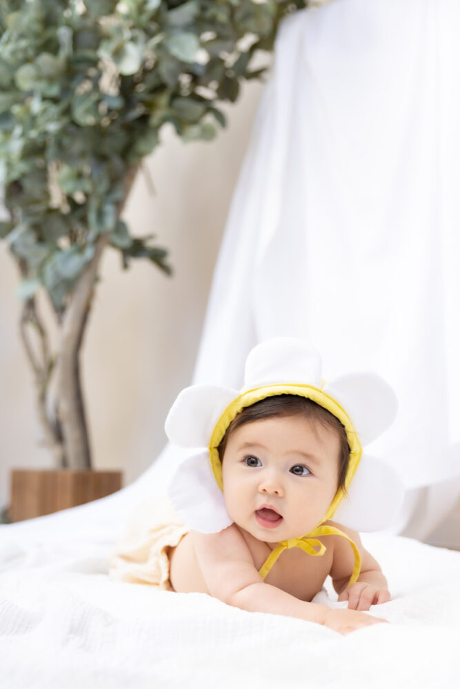 ぱれっとでは、赤ちゃんのペースに合わせて撮影を進めます。もし撮影中にぐずってしまっても、スタッフが上手にあやしながら進めますので、ママ・パパはリラックスして見守ってくださいね 🌸