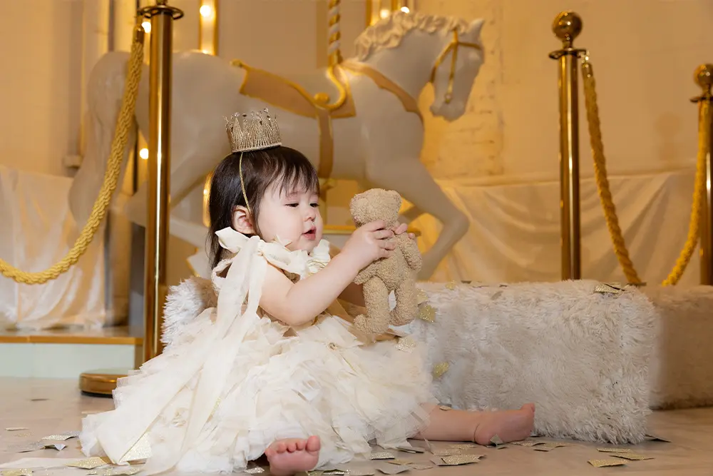 衣装、靴、帽子、お気に入りのおもちゃ、手作りの名前ボードなど、何を持ち込んでも追加料金はかかりません。 「メルカリで買った可愛いドレス」や「おじいちゃん・おばあちゃんに買ってもらった服」を気兼ねなく主役にできます。