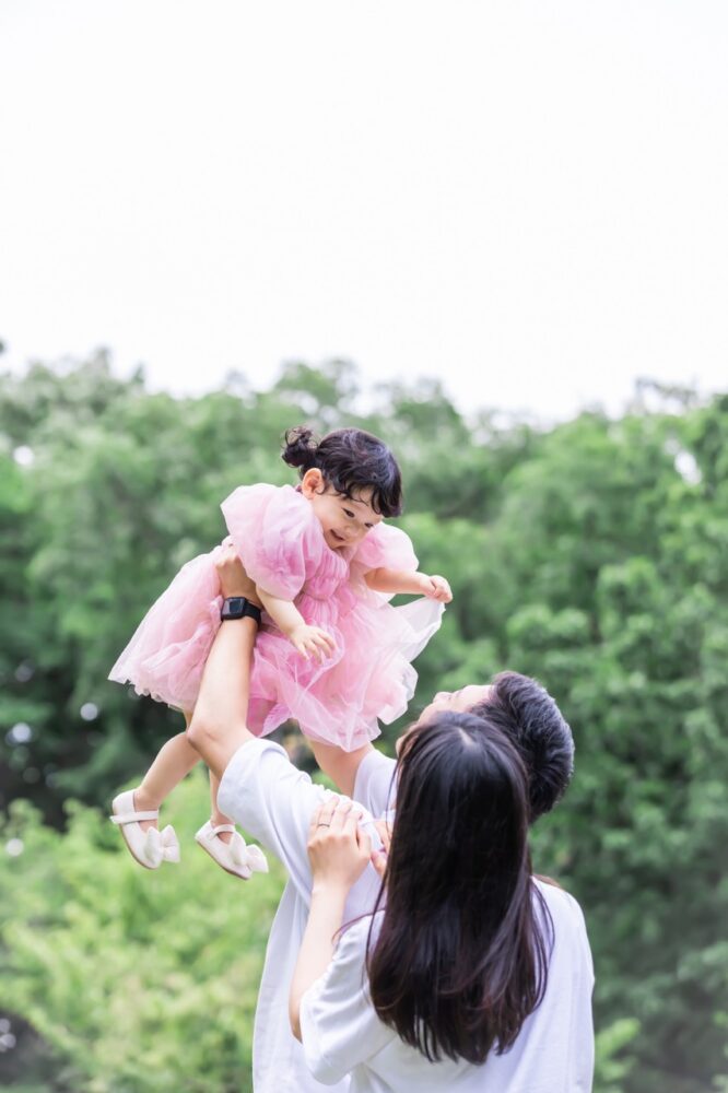 お子様の目線に合わせてしゃがむことで、家族みんなの表情がより生き生きと輝いて見えますね!