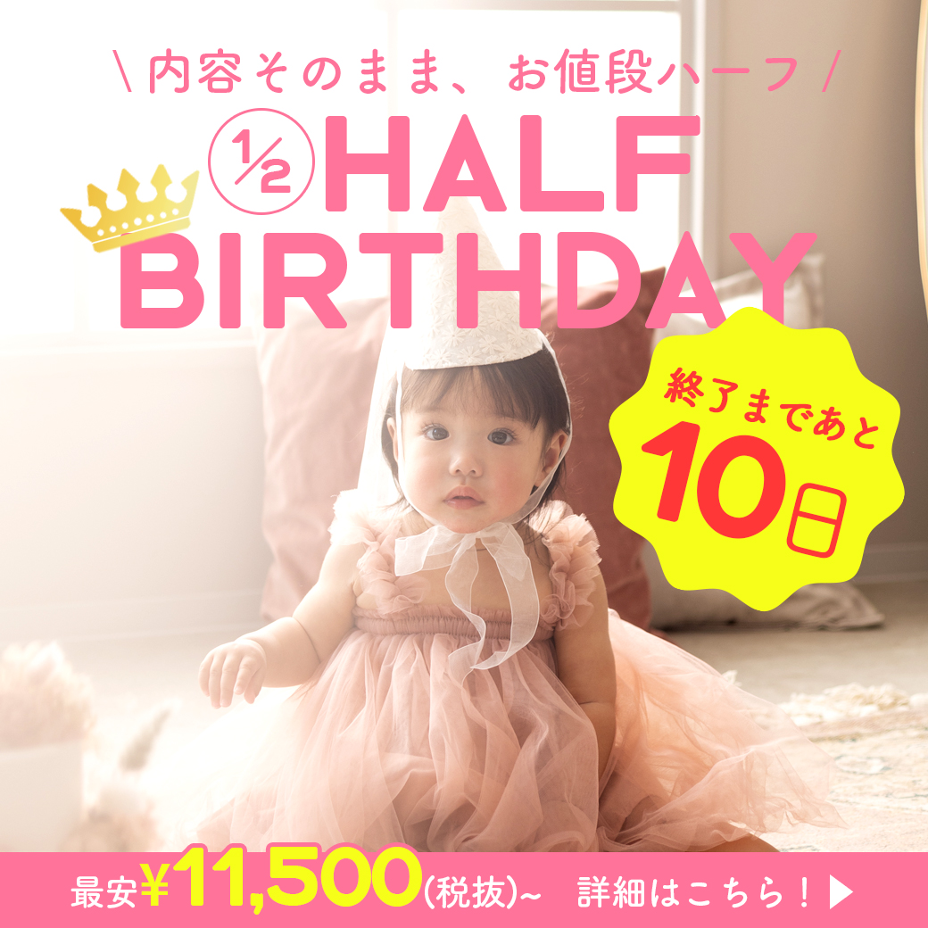 ハーフバースデーをもっとたくさんの方に写真に残してもらいたい!内容はそのまま、お値段ハーフ(半額)のスペシャルキャンペーンをスタートします!