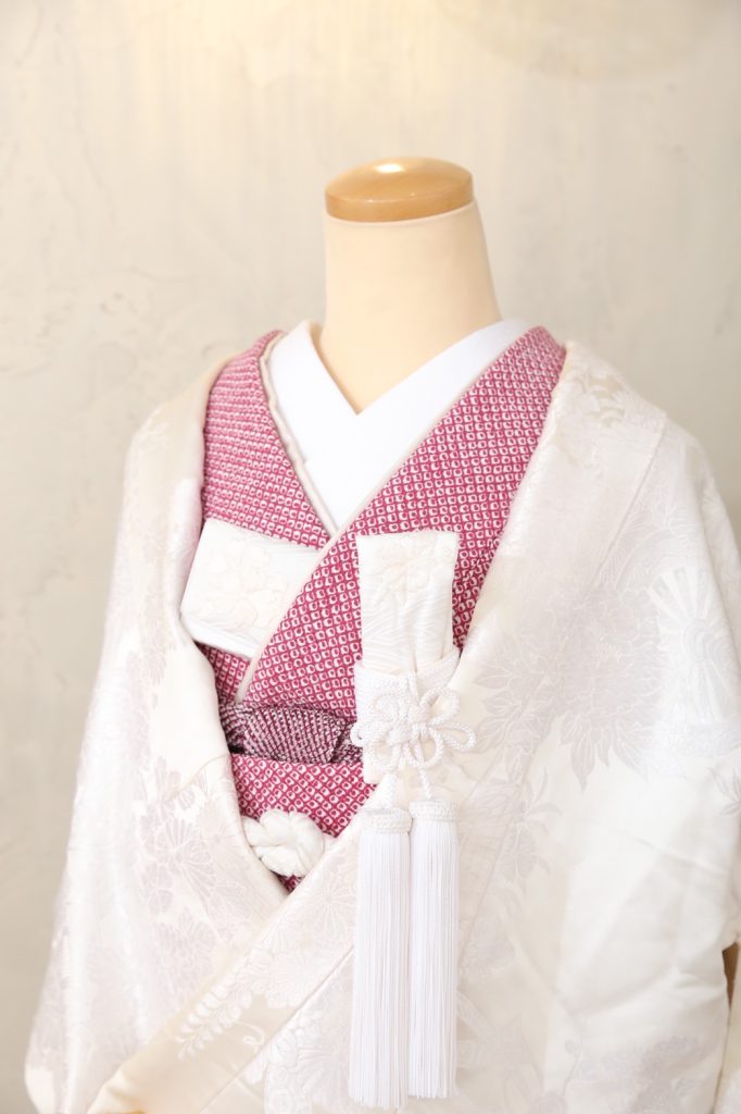 一般的には白無垢を着る際には白い掛下を合わせることが多いのですが最近は色掛下を合わせるコーディネートが増えてきています!
